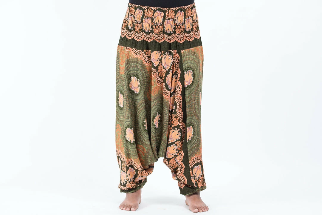 HaremPants.com Plus Size Mandala Elephant Drop Crotch Women’s Elephant Pants In Olive