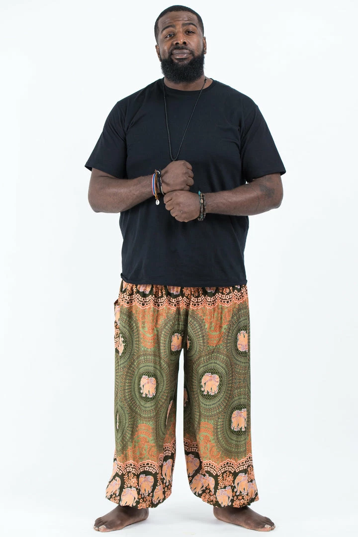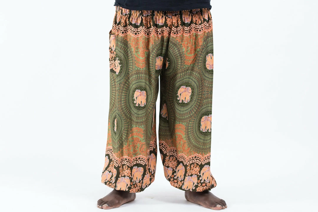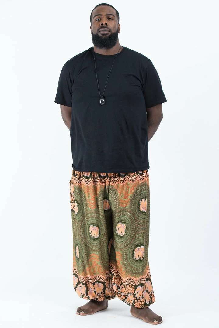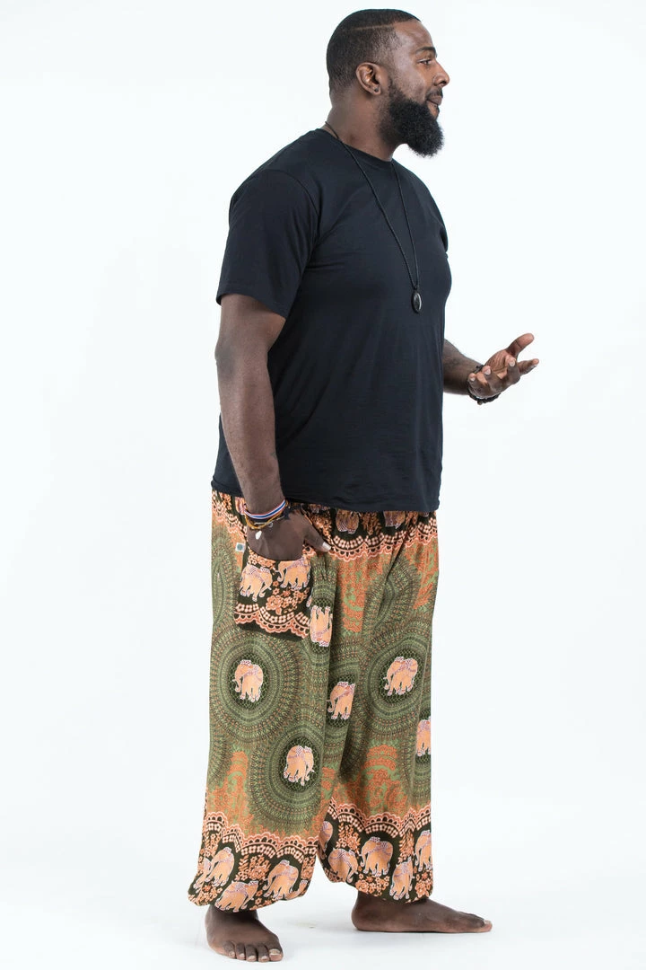 HaremPants.com Plus Size Mandala Elephant Men’s Elephant Pants In Olive