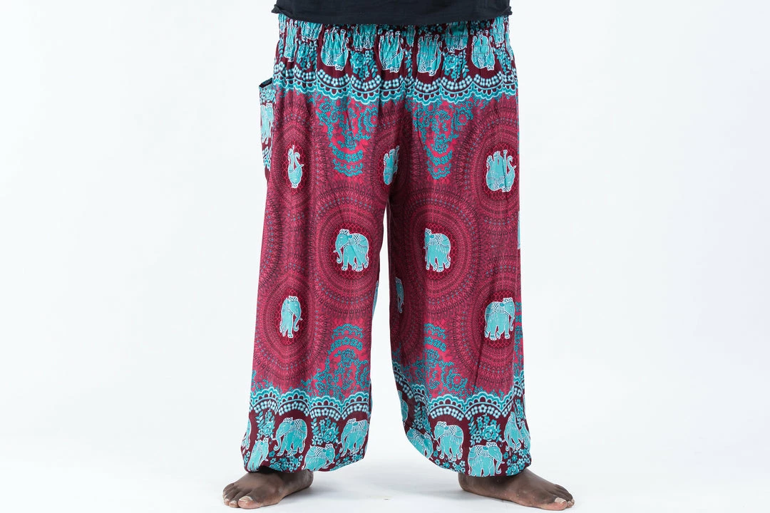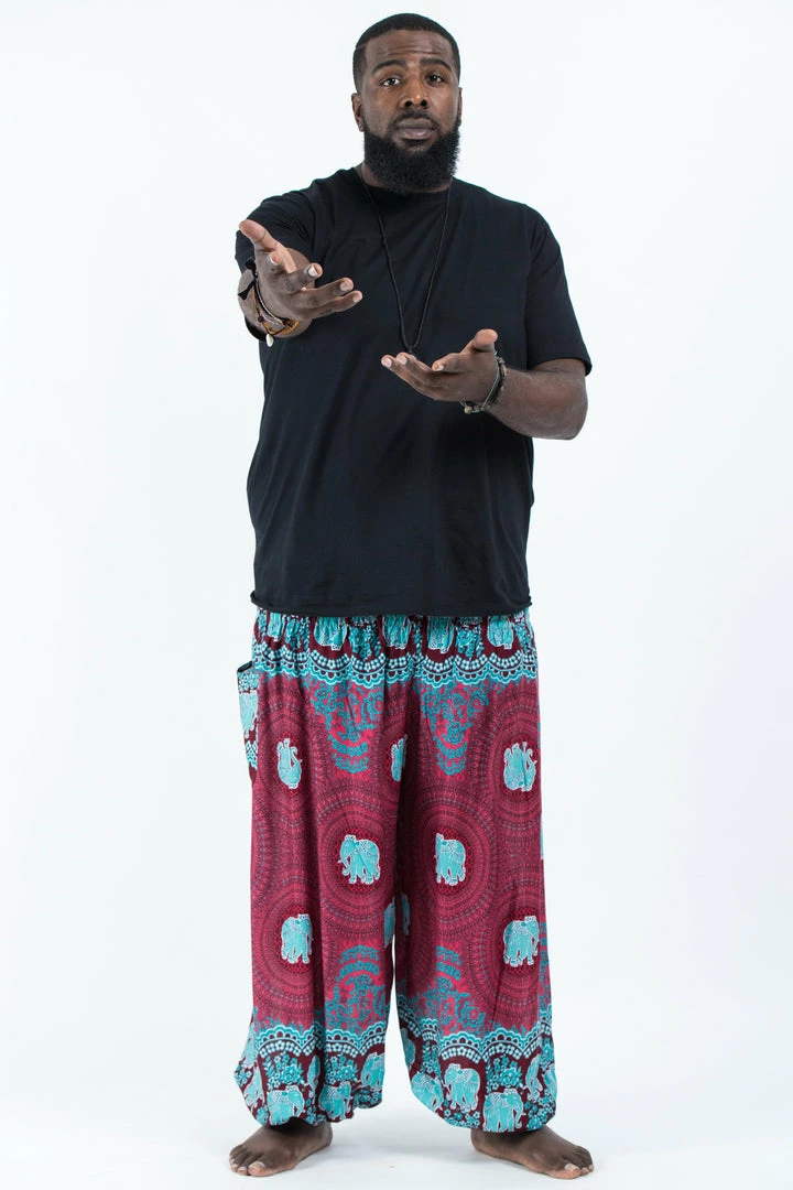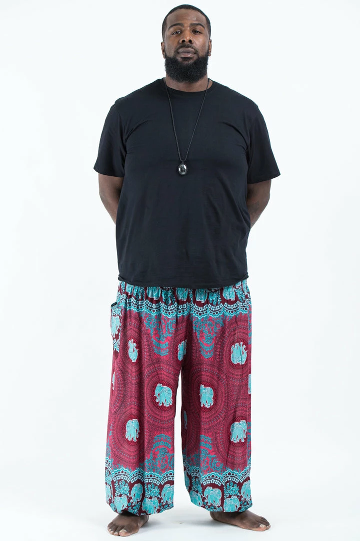 HaremPants.com Plus Size Mandala Elephant Men’s Elephant Pants In Red