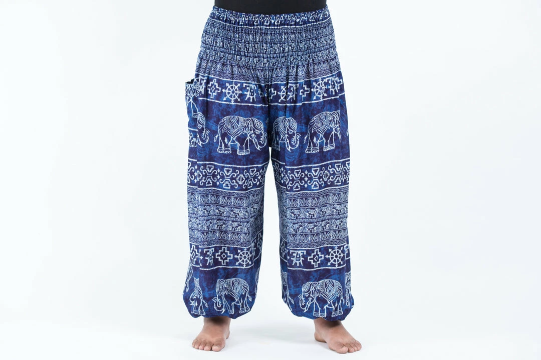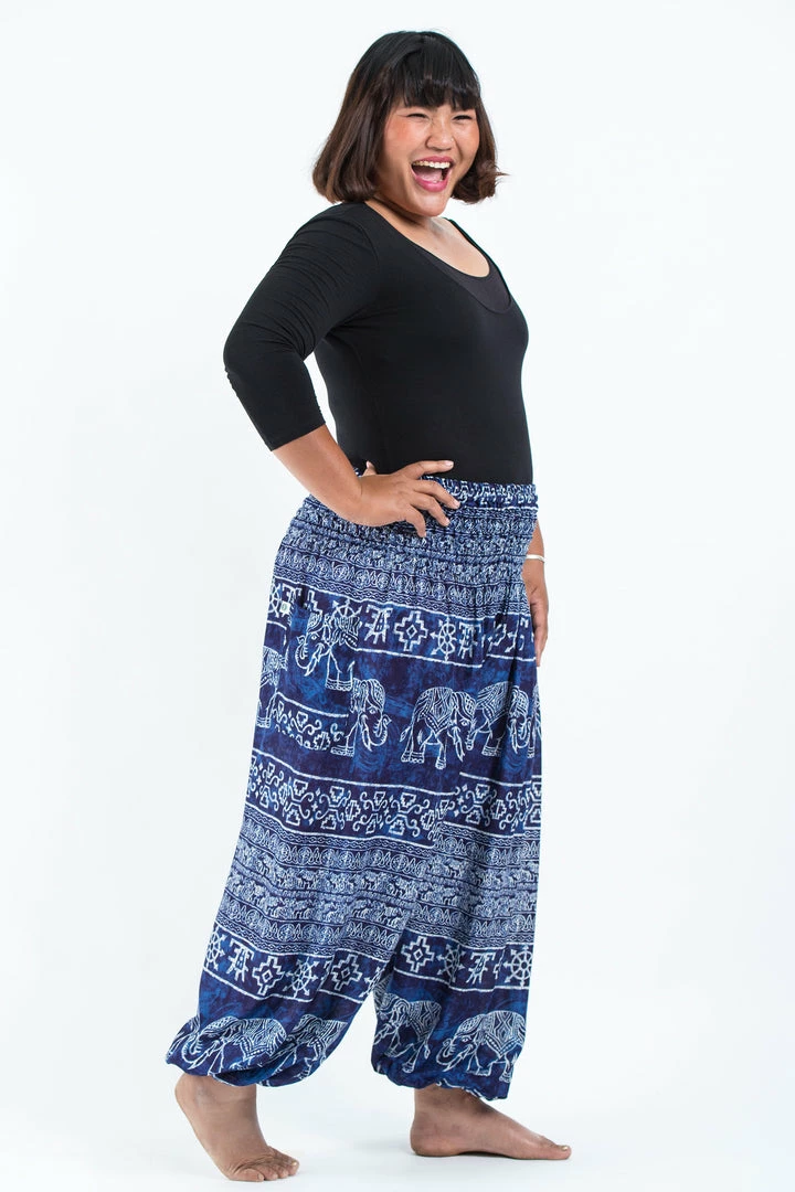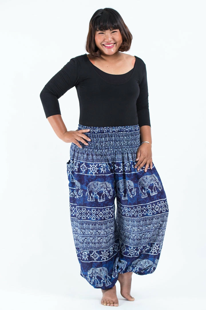 HaremPants.com Plus Size Marble Elephant Women’s Elephant Pants In Blue