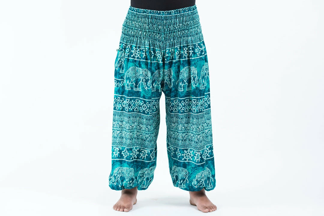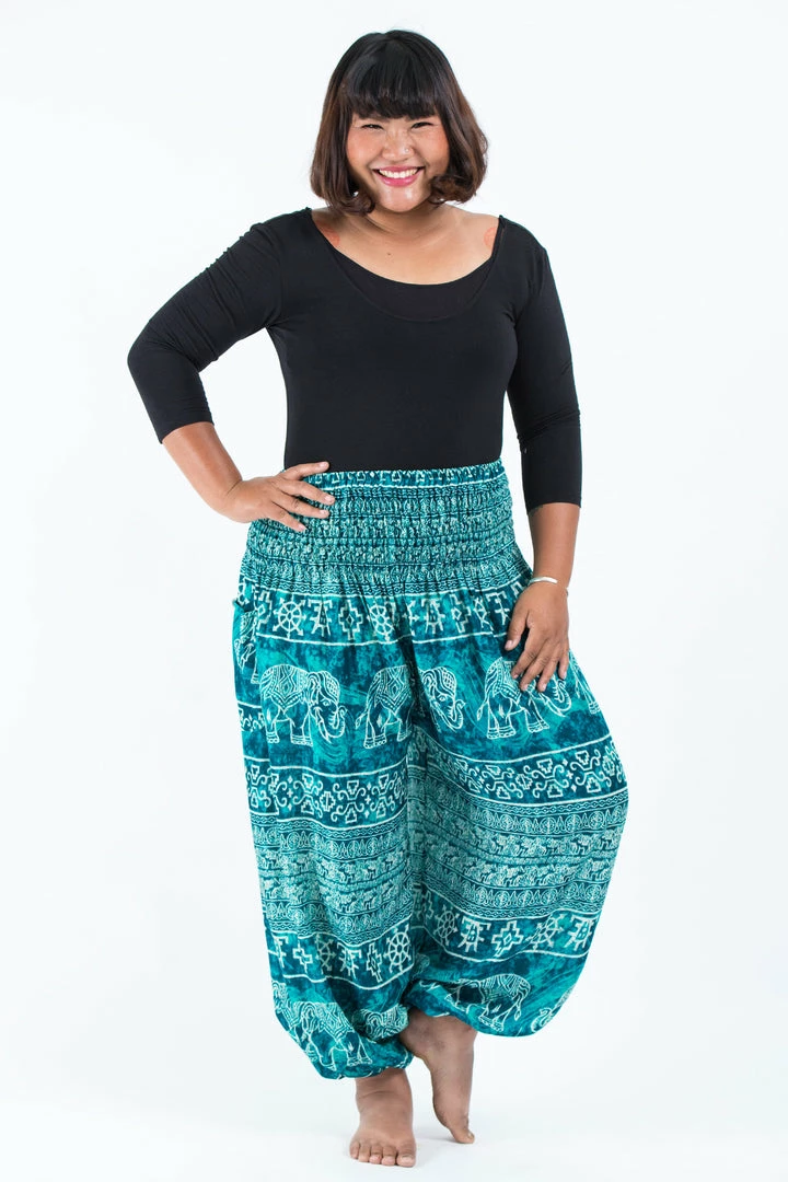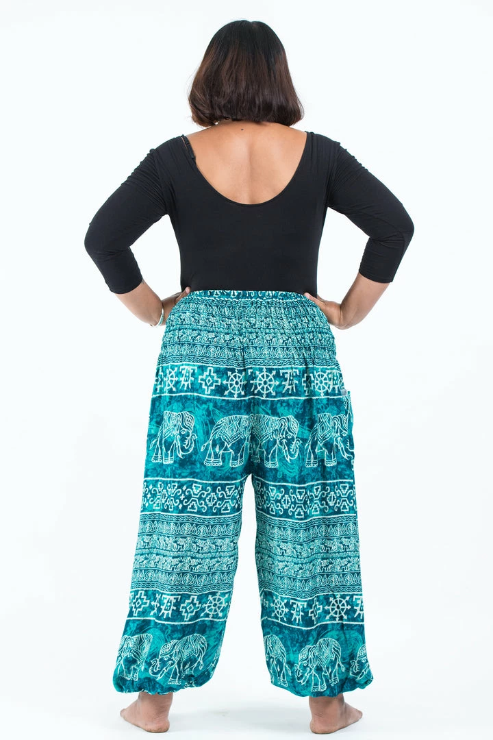 HaremPants.com Plus Size Marble Elephant Women’s Elephant Pants In Turquoise