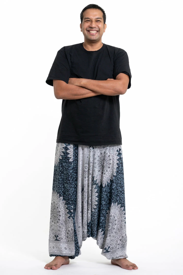 HaremPants.com Plus Size Marble Mandalas Drop Crotch Men’s Harem Pants In Indigo