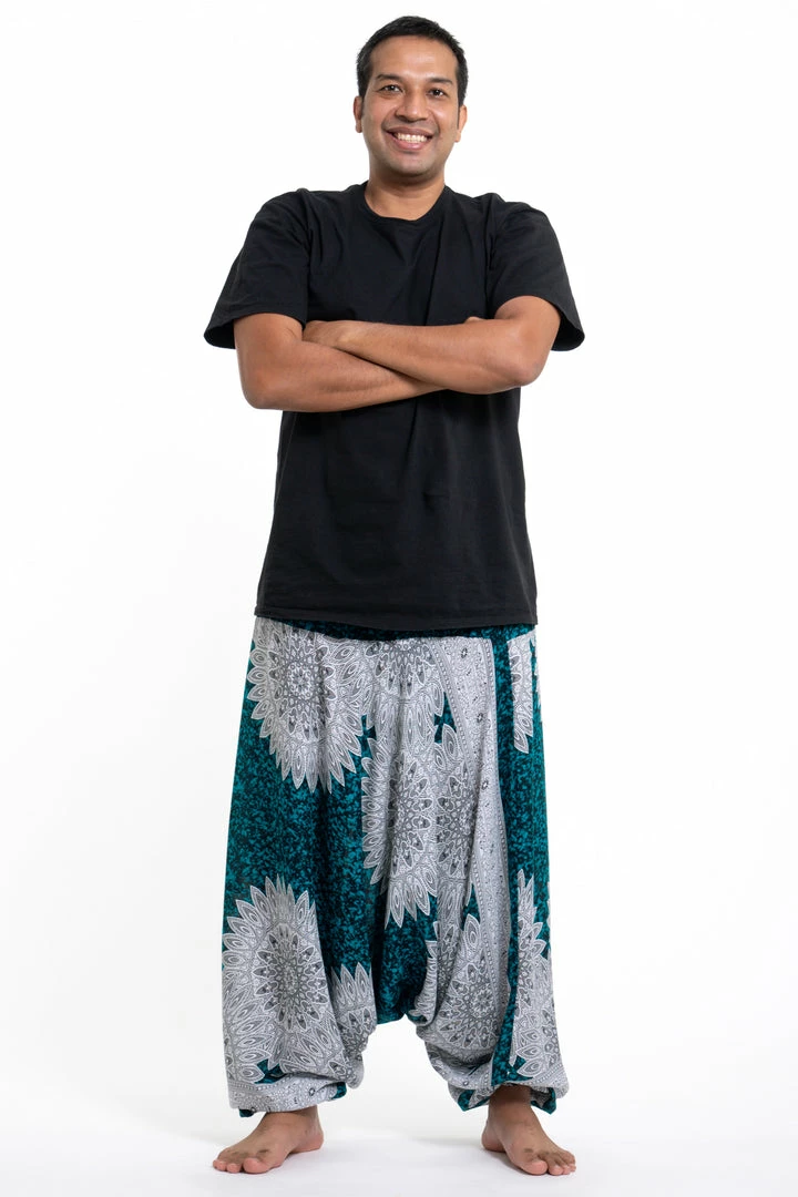 HaremPants.com Plus Size Marble Mandalas Drop Crotch Men’s Harem Pants In Turquoise