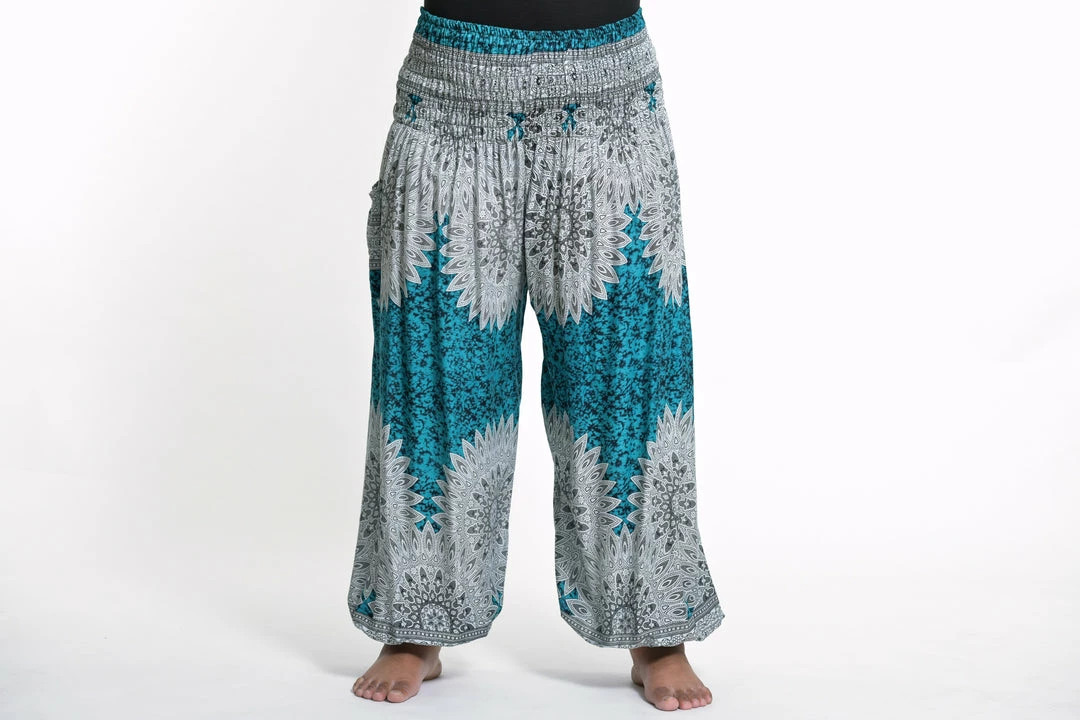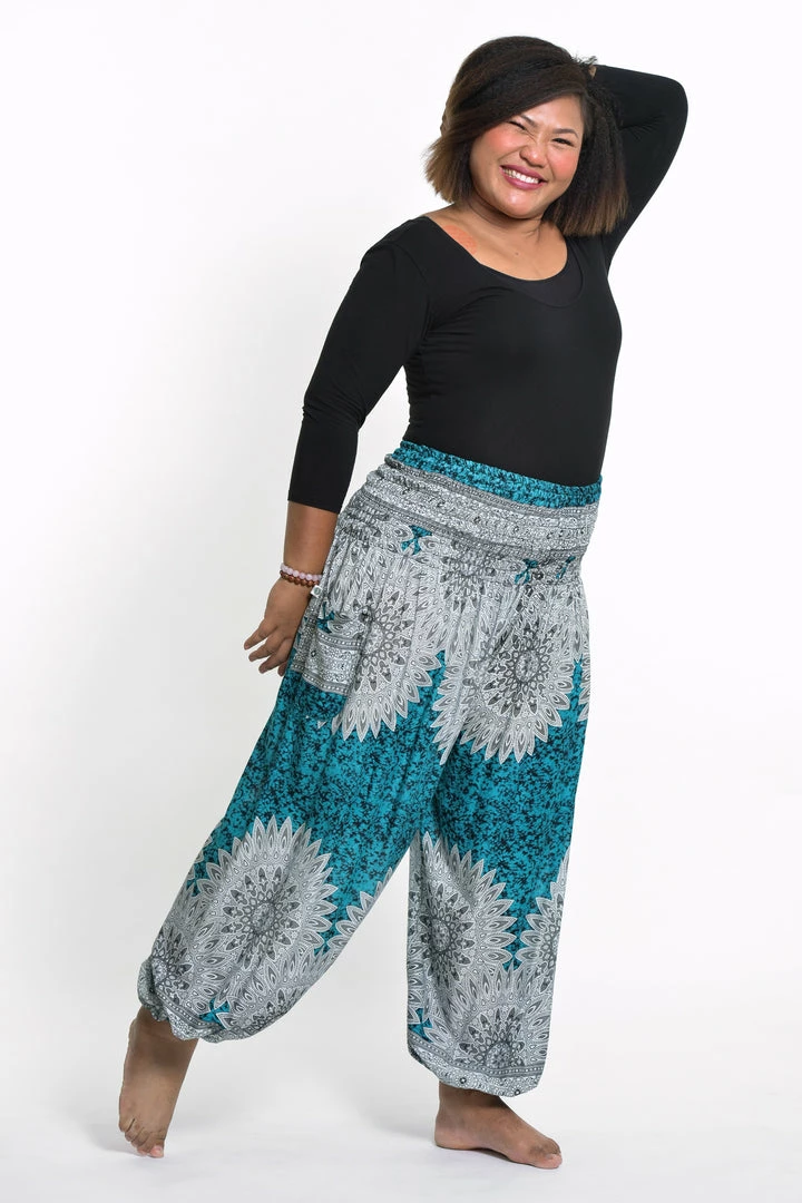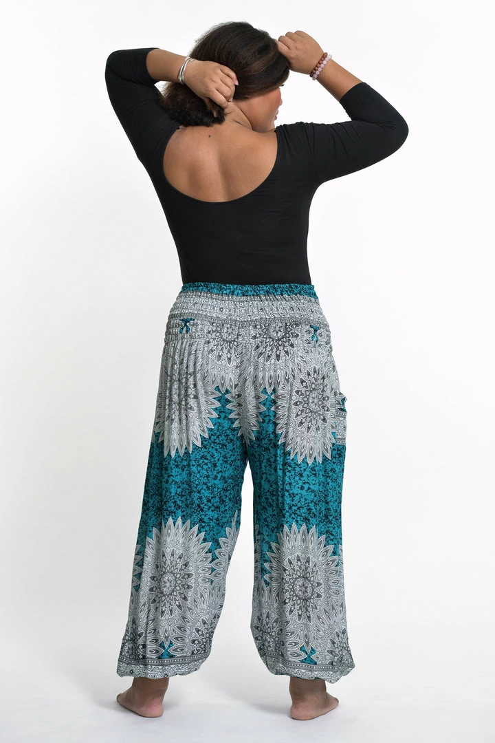 HaremPants.com Plus Size Marble Mandalas Women’s Harem Pants In Turquoise