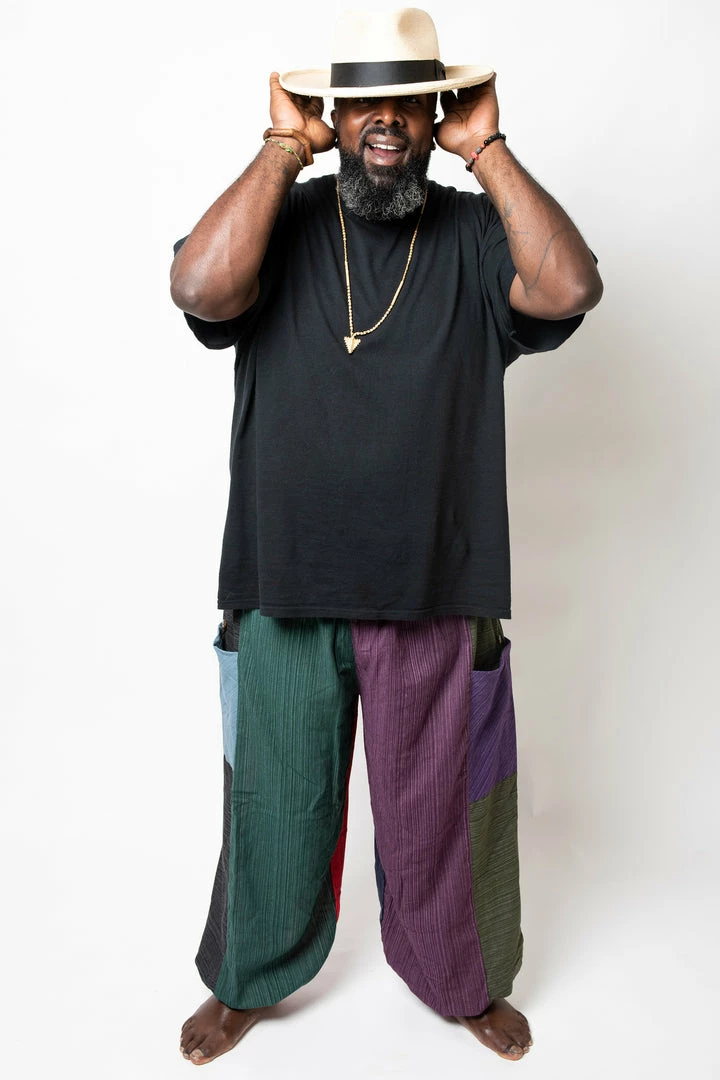 HaremPants.com Plus Size Men’s Drawstring Patchwork Pinstripes Cotton Pants