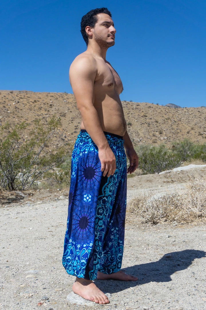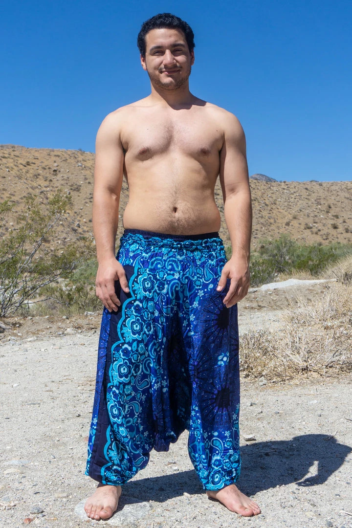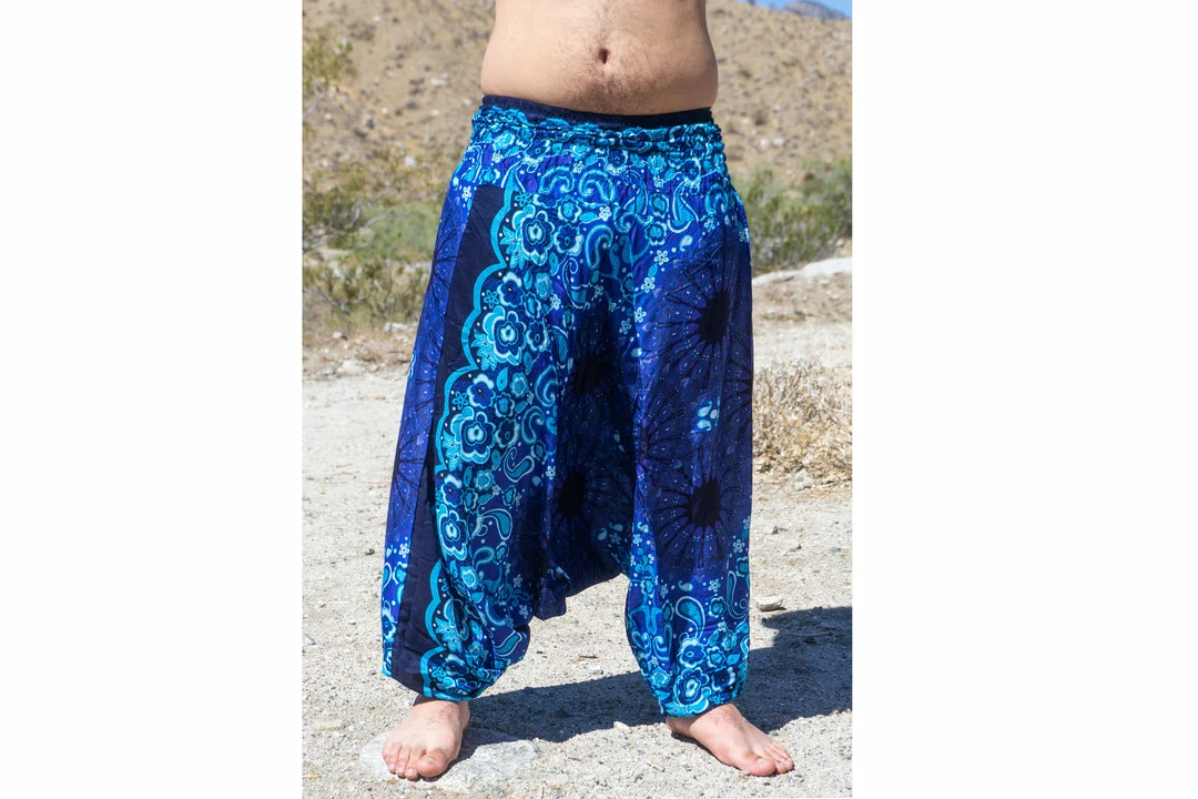 HaremPants.com Plus Size Paisley Mandalas Drop Crotch Men’s Harem Pants In Blue