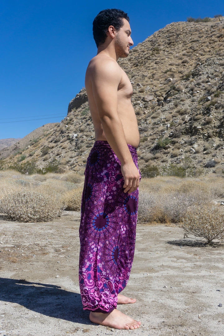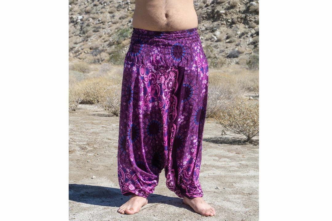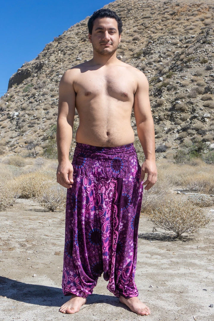 HaremPants.com Plus Size Paisley Mandalas Drop Crotch Men’s Harem Pants In Purple