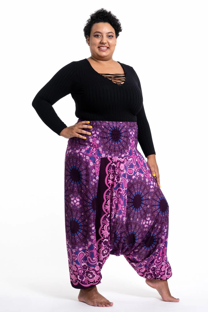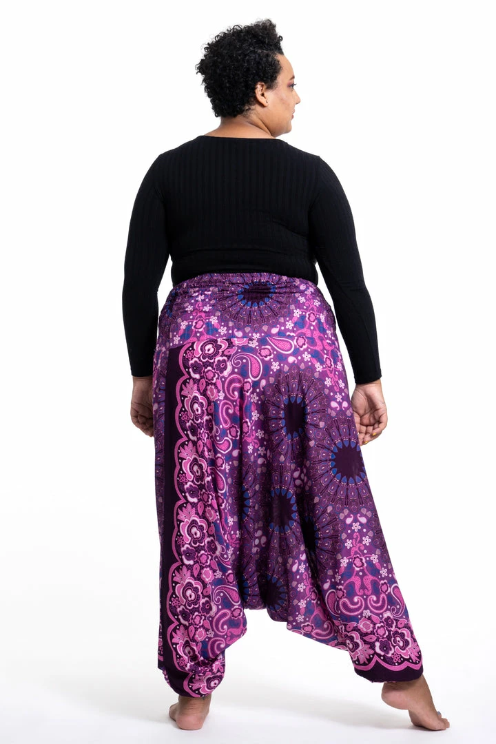HaremPants.com Plus Size Paisley Mandalas Drop Crotch Women’s Harem Pants In Purple