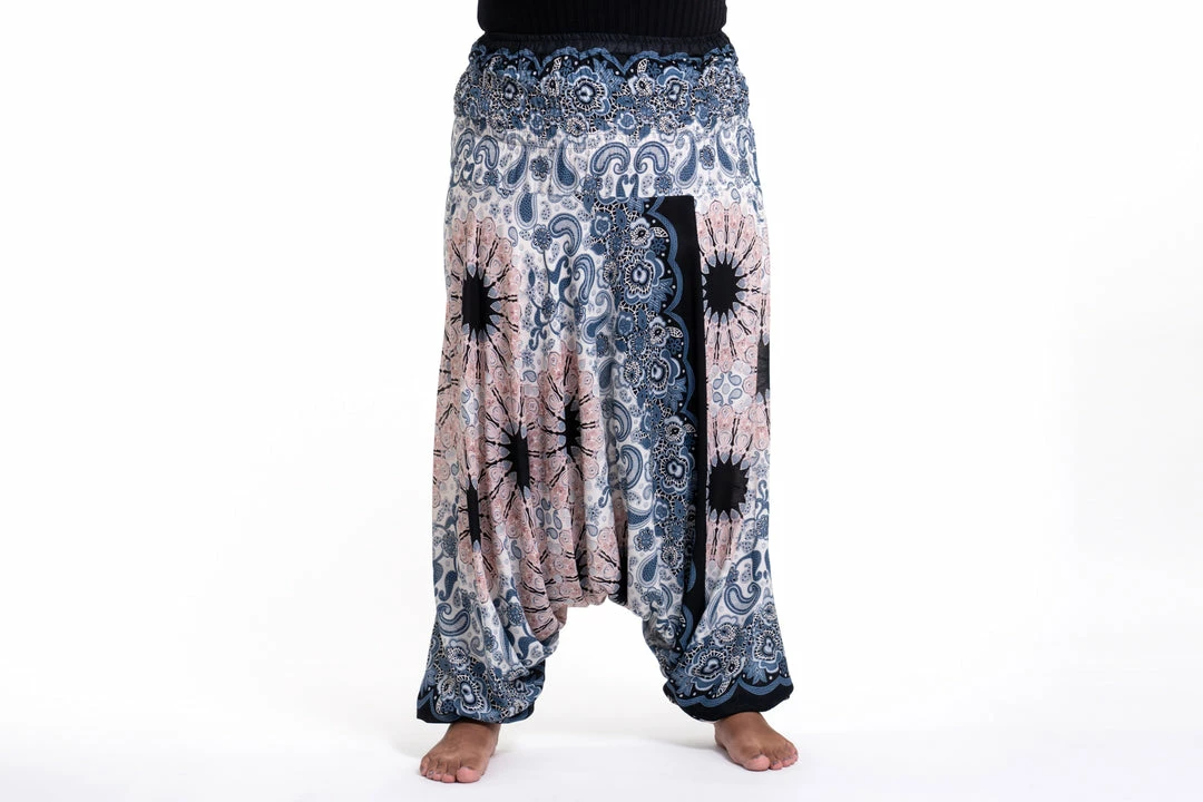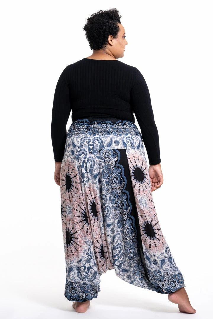 HaremPants.com Plus Size Paisley Mandalas Drop Crotch Women’s Harem Pants In Silver Gray