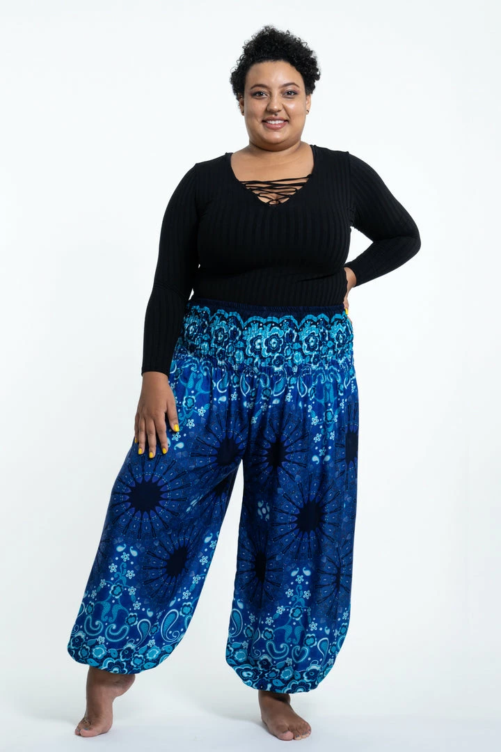 HaremPants.com Plus Size Paisley Mandalas Women’s Harem Pants In Blue
