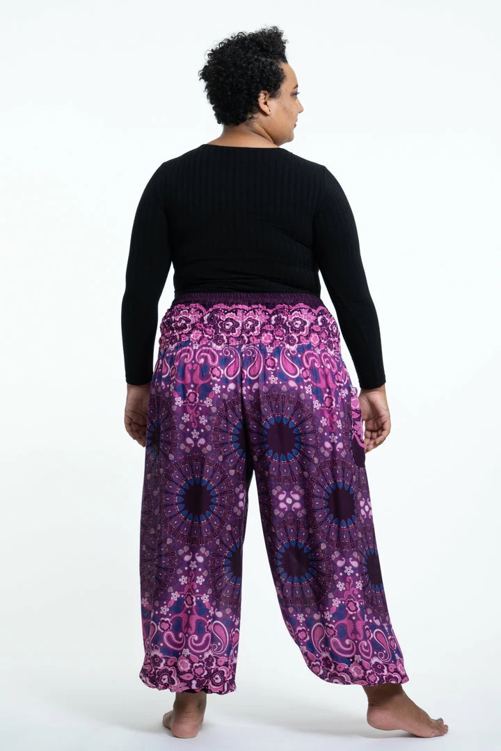 HaremPants.com Plus Size Paisley Mandalas Women’s Harem Pants In Purple