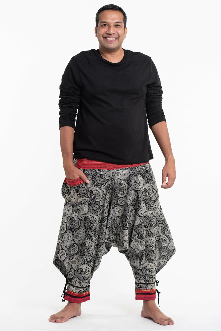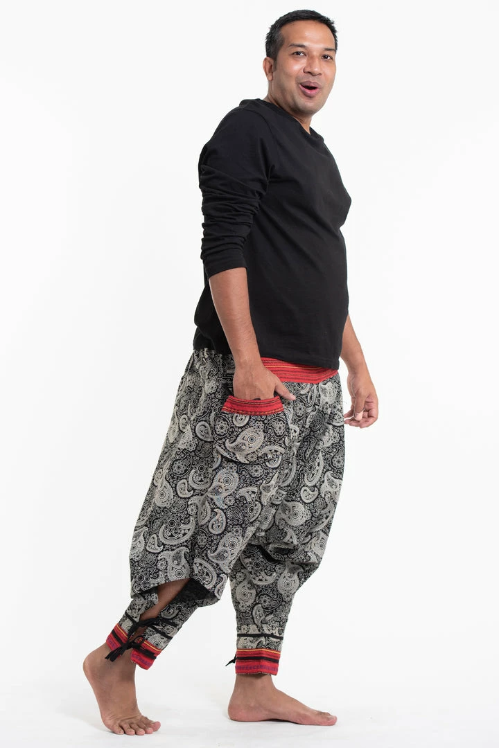 HaremPants.com Plus Size Paisley Thai Hill Tribe Fabric Men’s Harem Pants With Ankle Straps