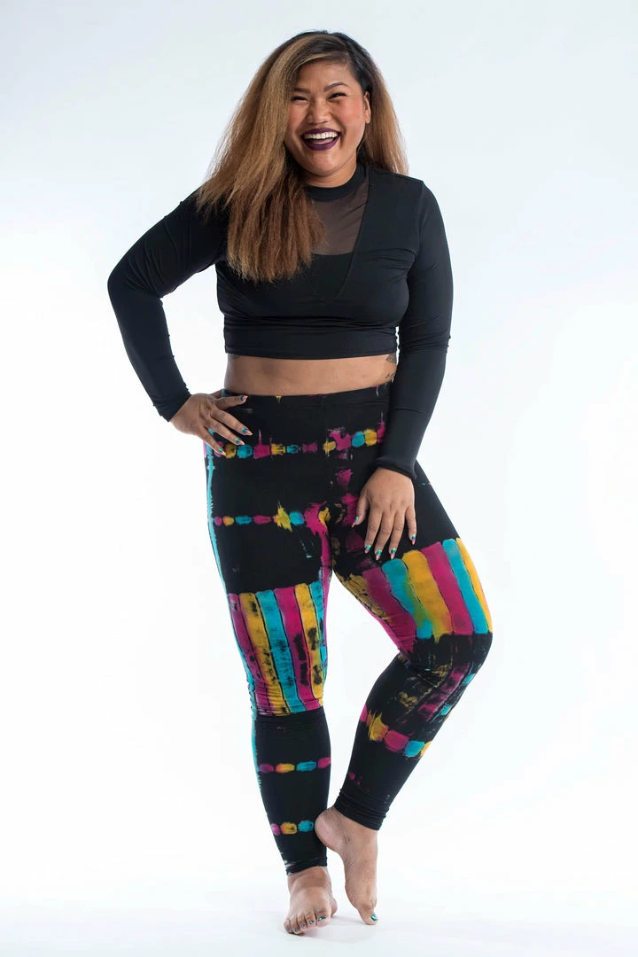 Super soft and stretchy plus size leggings with cool unique tie dye designs .