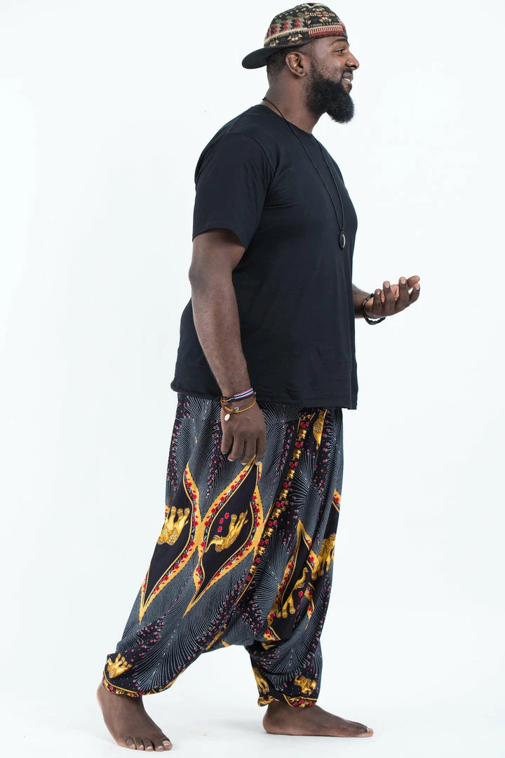HaremPants.com Plus Size Peacock Elephant Drop Crotch Men’s Elephant Pants In Black