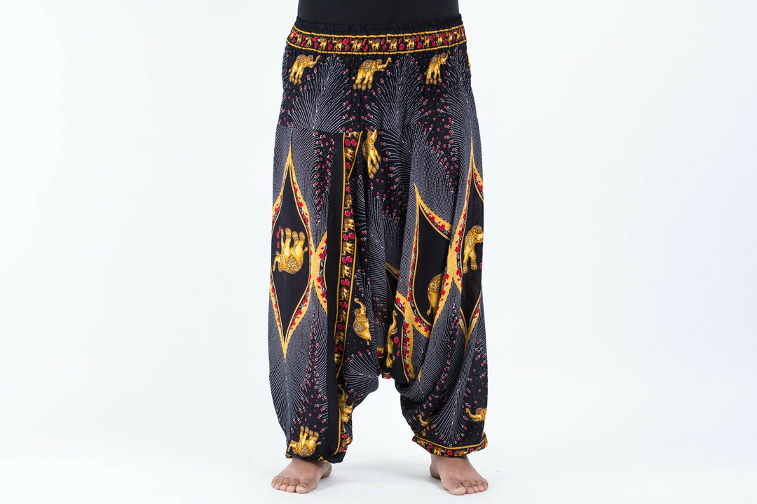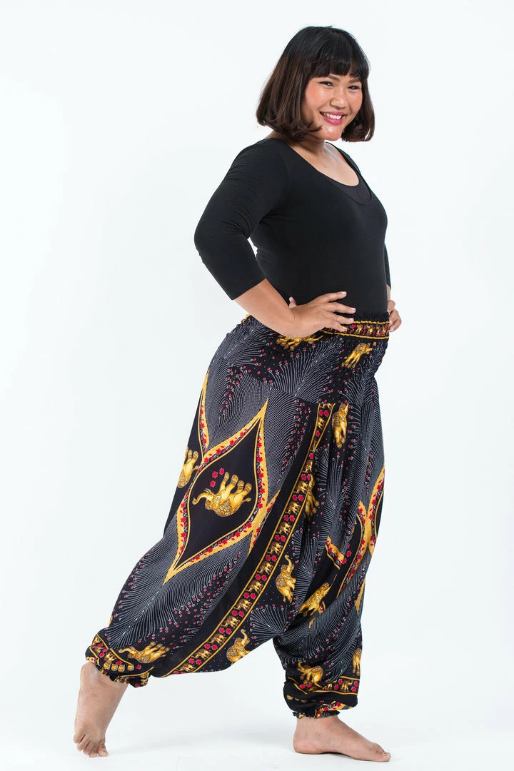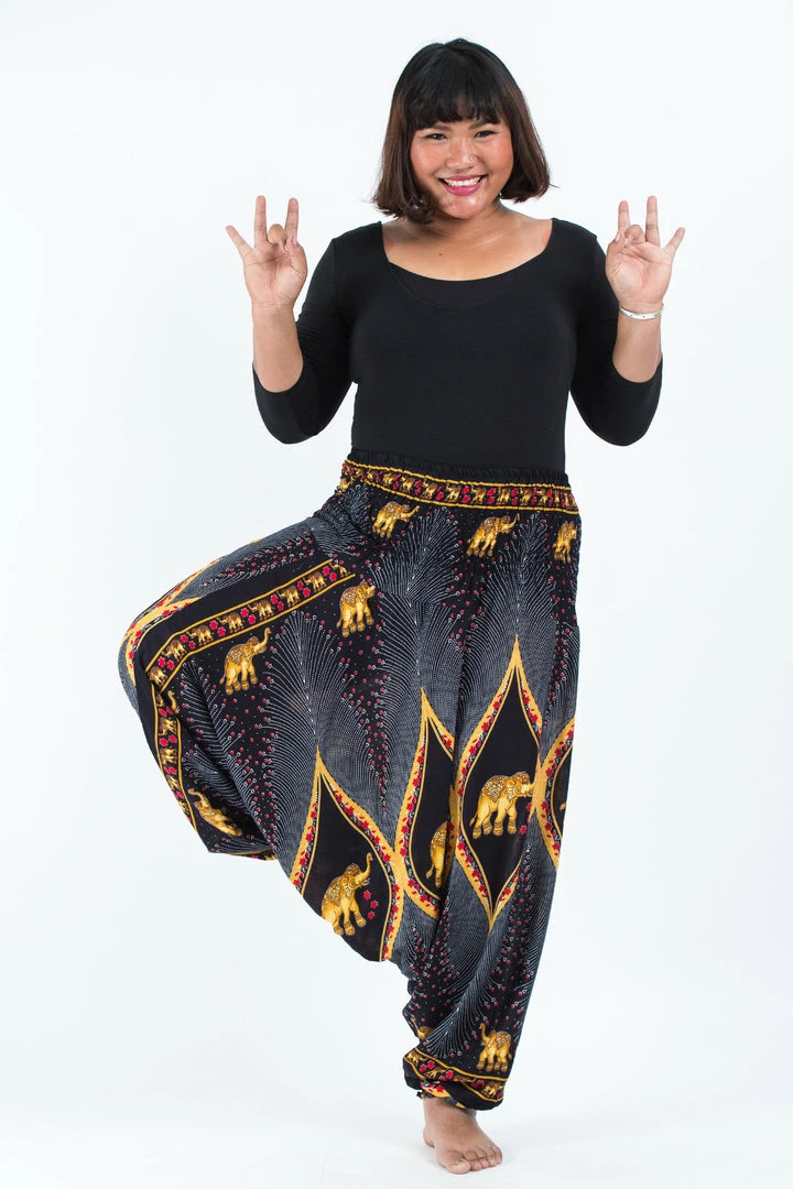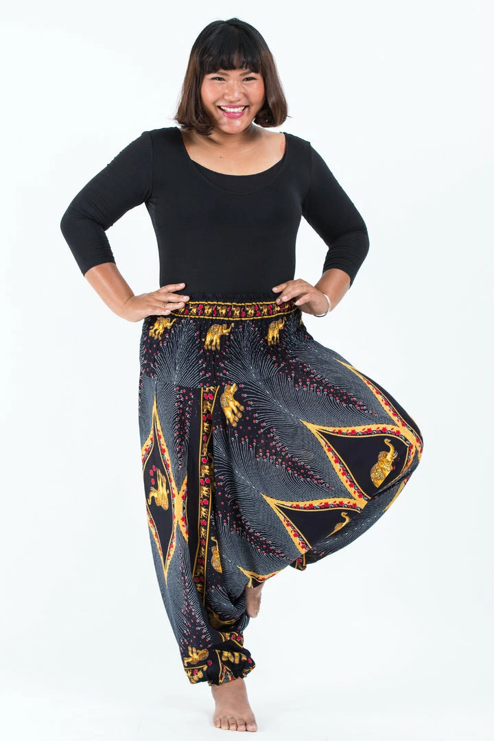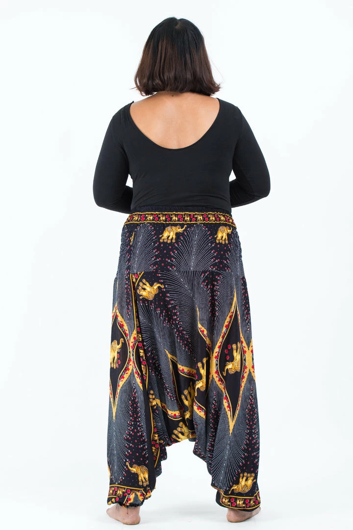 HaremPants.com Plus Size Peacock Elephant Drop Crotch Women’s Elephant Pants In Black