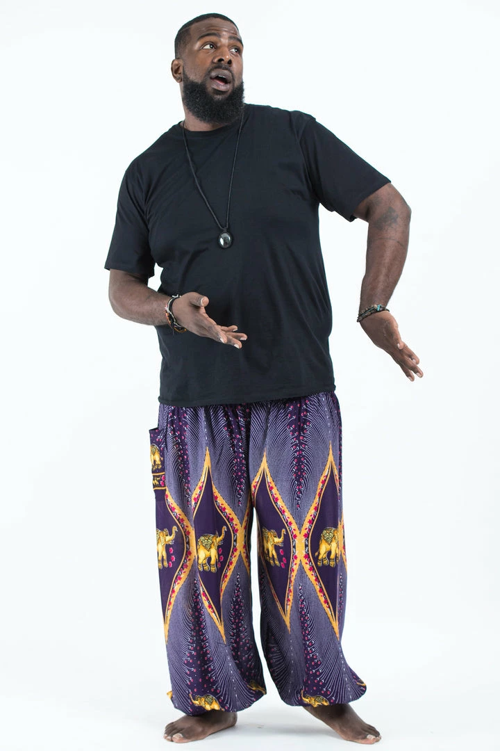 HaremPants.com Plus Size Peacock Elephant Men’s Elephant Pants In Purple