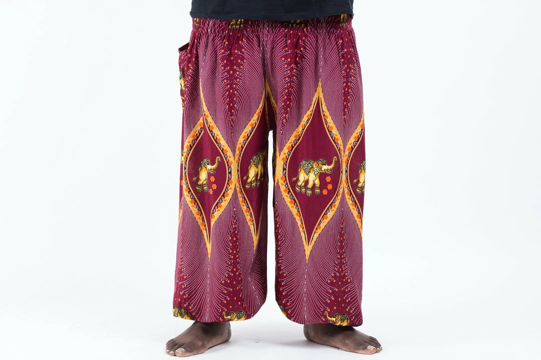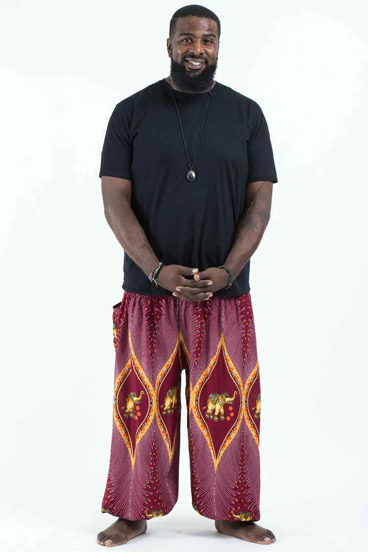 HaremPants.com Plus Size Peacock Elephant Men’s Elephant Pants In Red