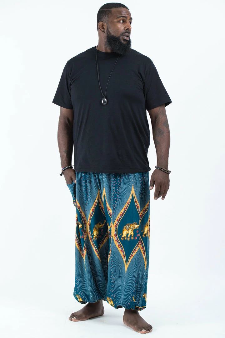 HaremPants.com Plus Size Peacock Elephant Men’s Elephant Pants In Turquoise