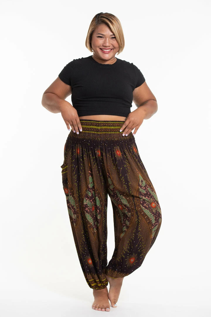 HaremPants.com Plus Size Peacock Eye Women’s Harem Pants In Brown