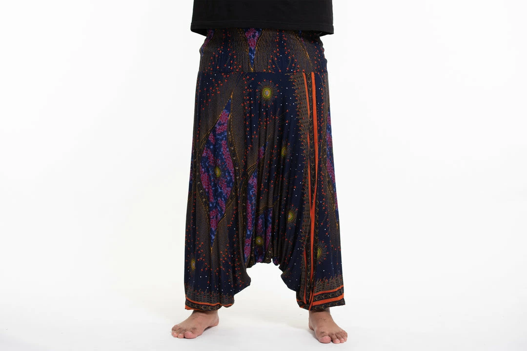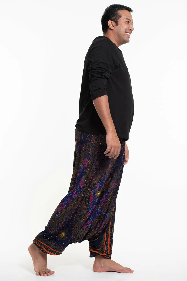 HaremPants.com Plus Size Peacock Eyes Drop Crotch Men’s Harem Pants In Navy