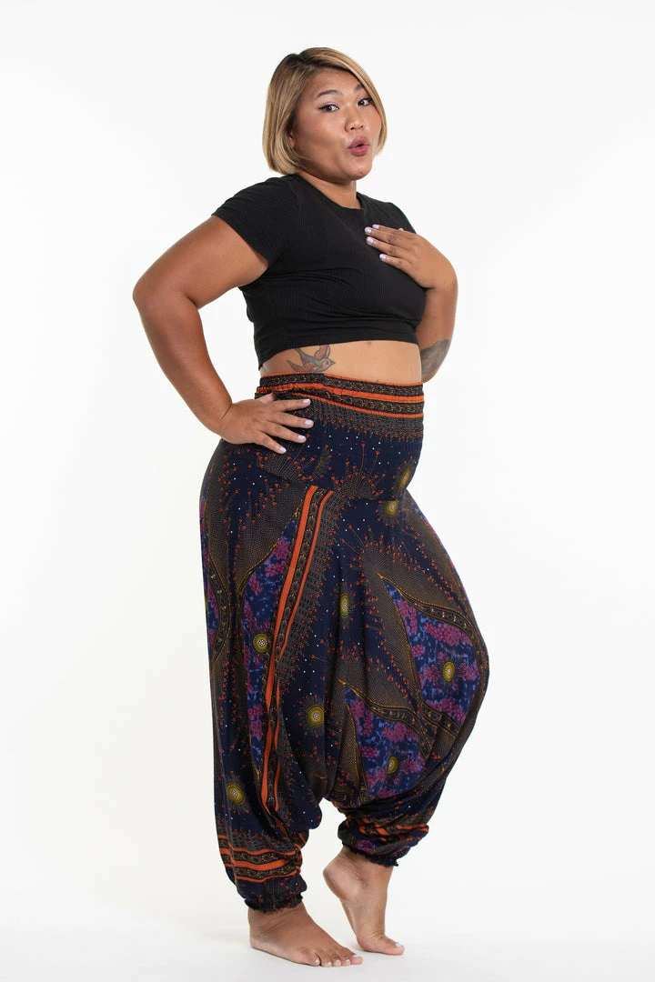 HaremPants.com Plus Size Peacock Eyes Drop Crotch Women’s Harem Pants In Navy