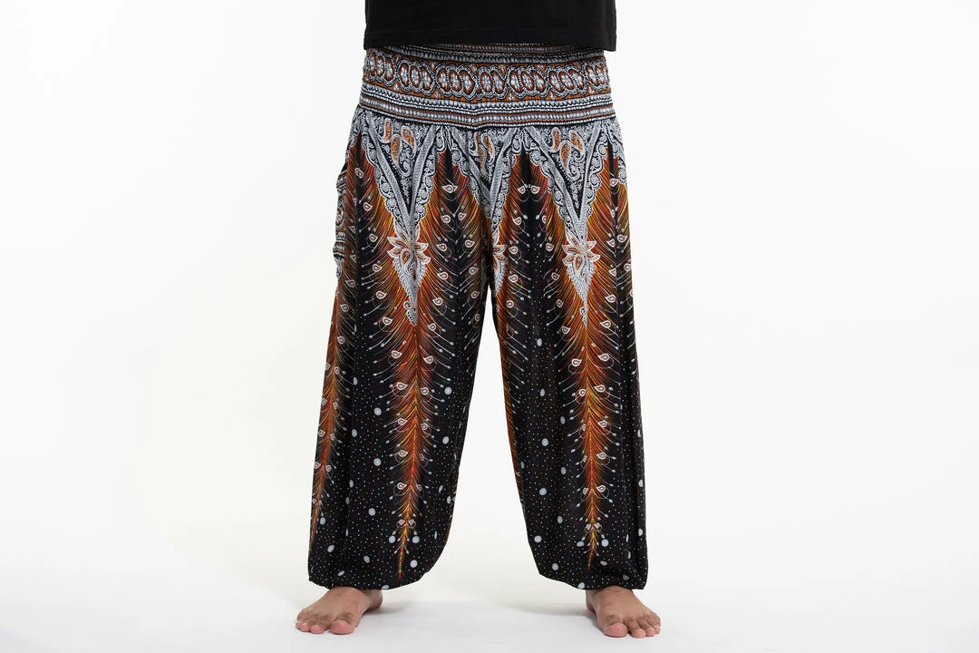 HaremPants.com Plus Size Peacock Feathers Men’s Harem Pants In Black