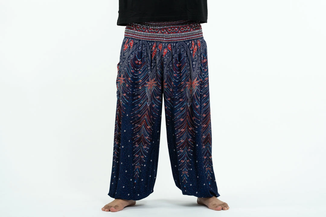 HaremPants.com Plus Size Peacock Feathers Men’s Harem Pants In Blue