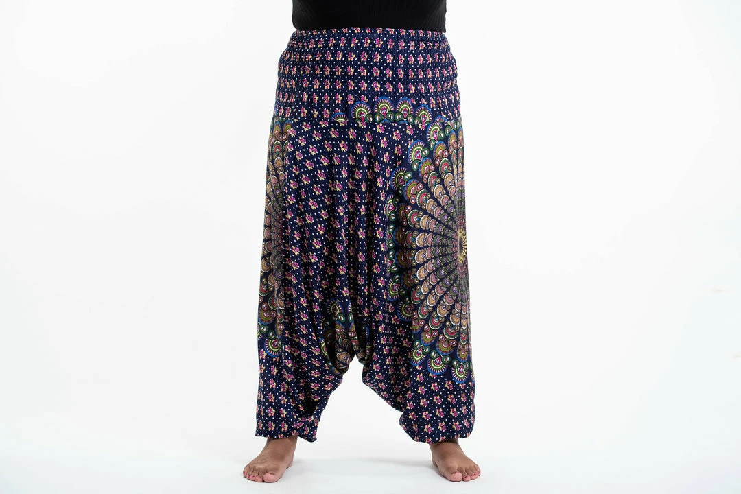 HaremPants.com Plus Size Peacock Mandalas Drop Crotch Women’s Harem Pants In Blue