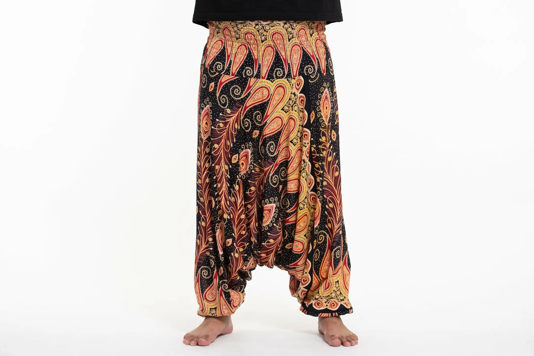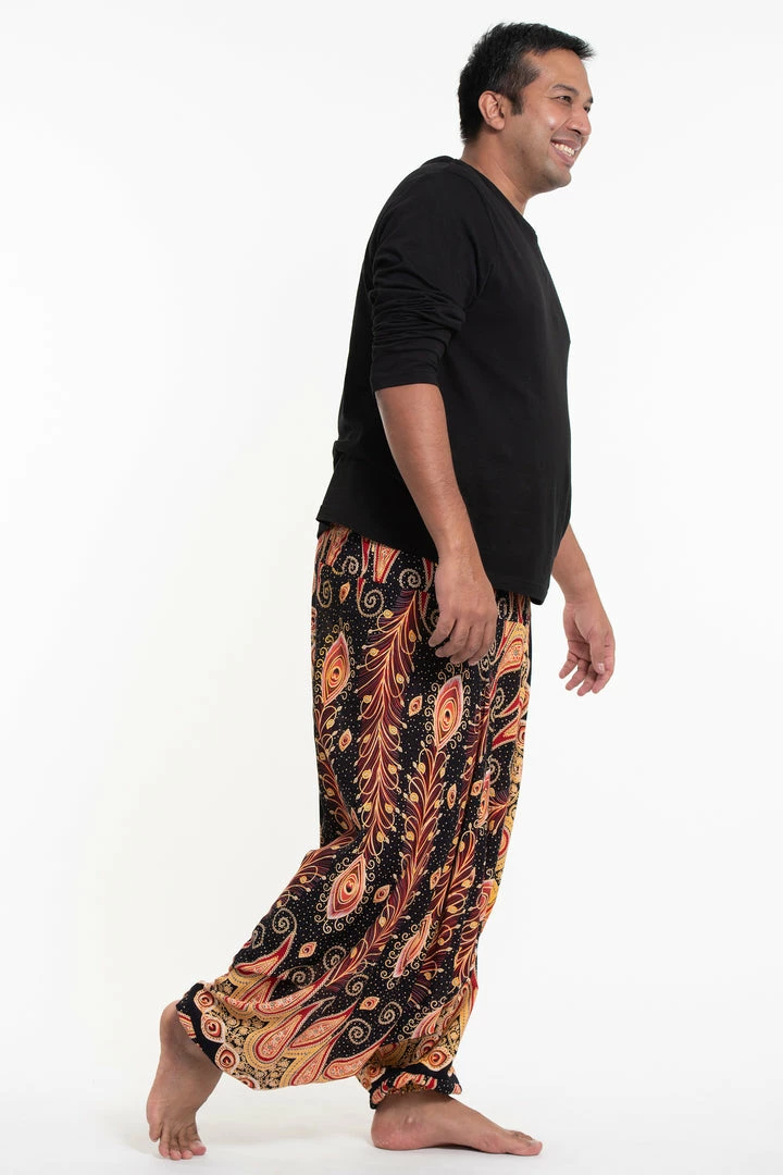 HaremPants.com Plus Size Peacock Paisley Drop Crotch Men’s Harem Pants In Black