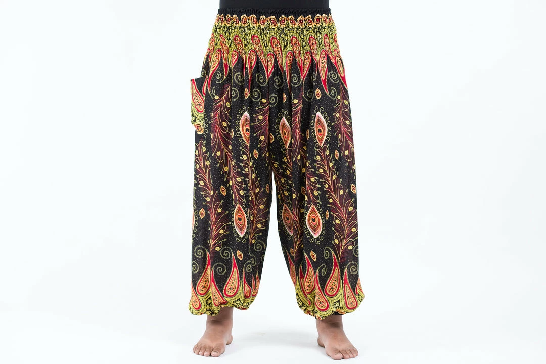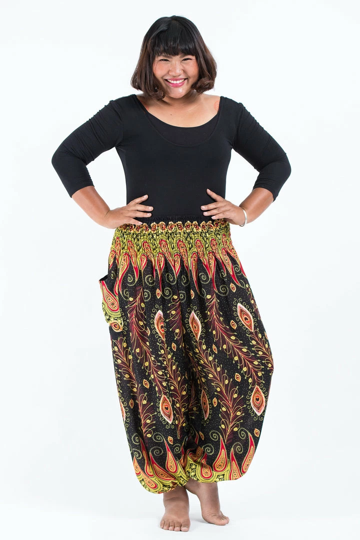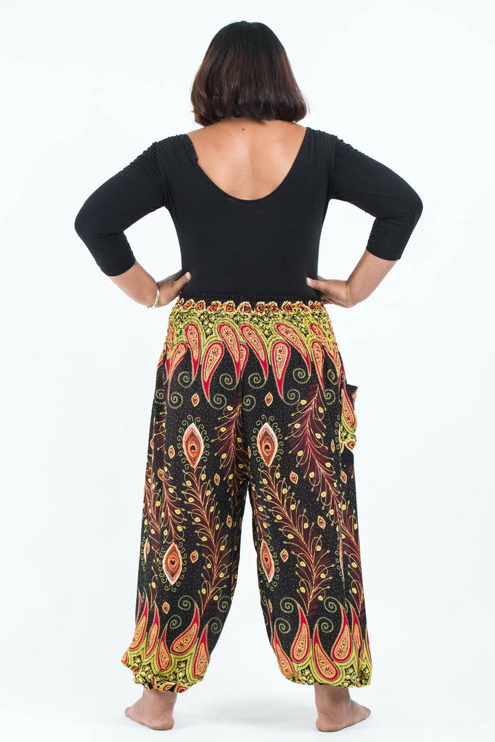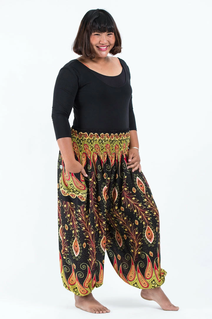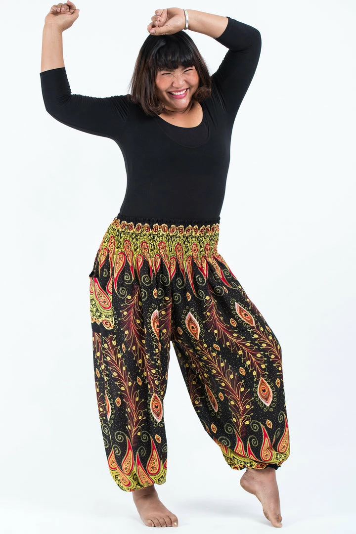 HaremPants.com Plus Size Peacock Paisley Women’s Harem Pants In Black
