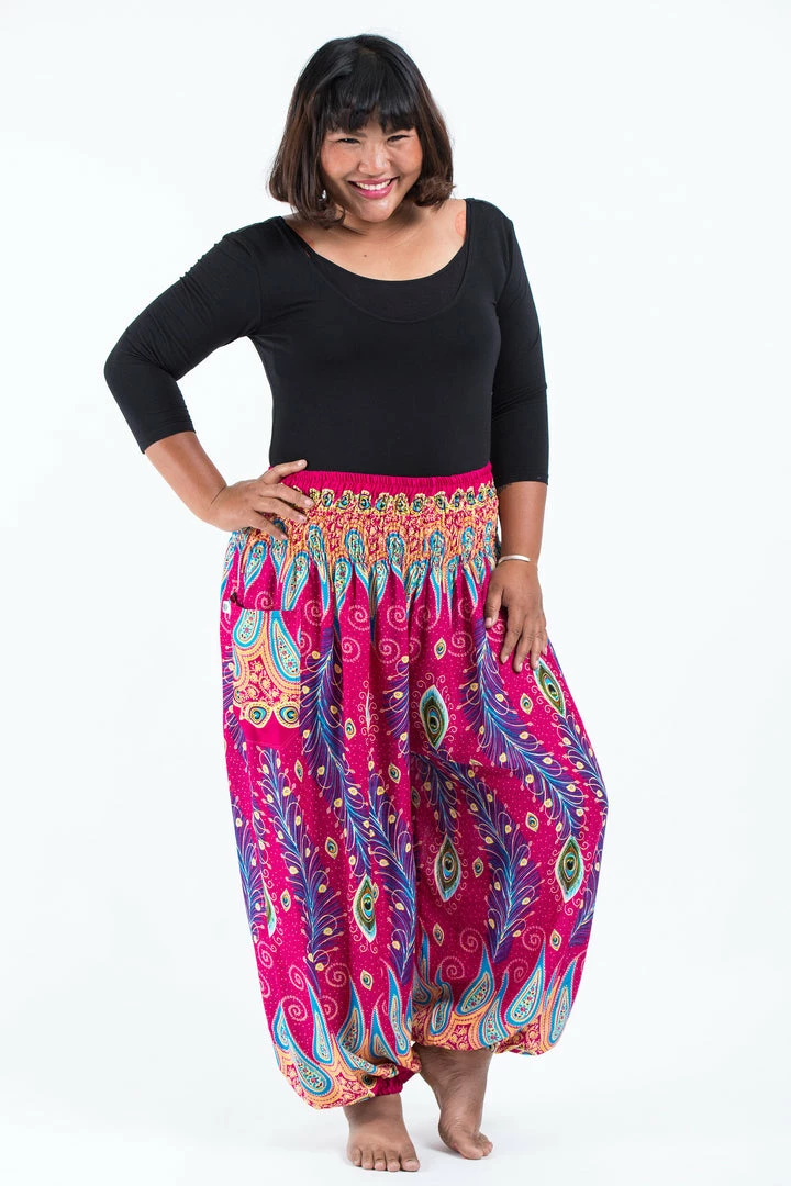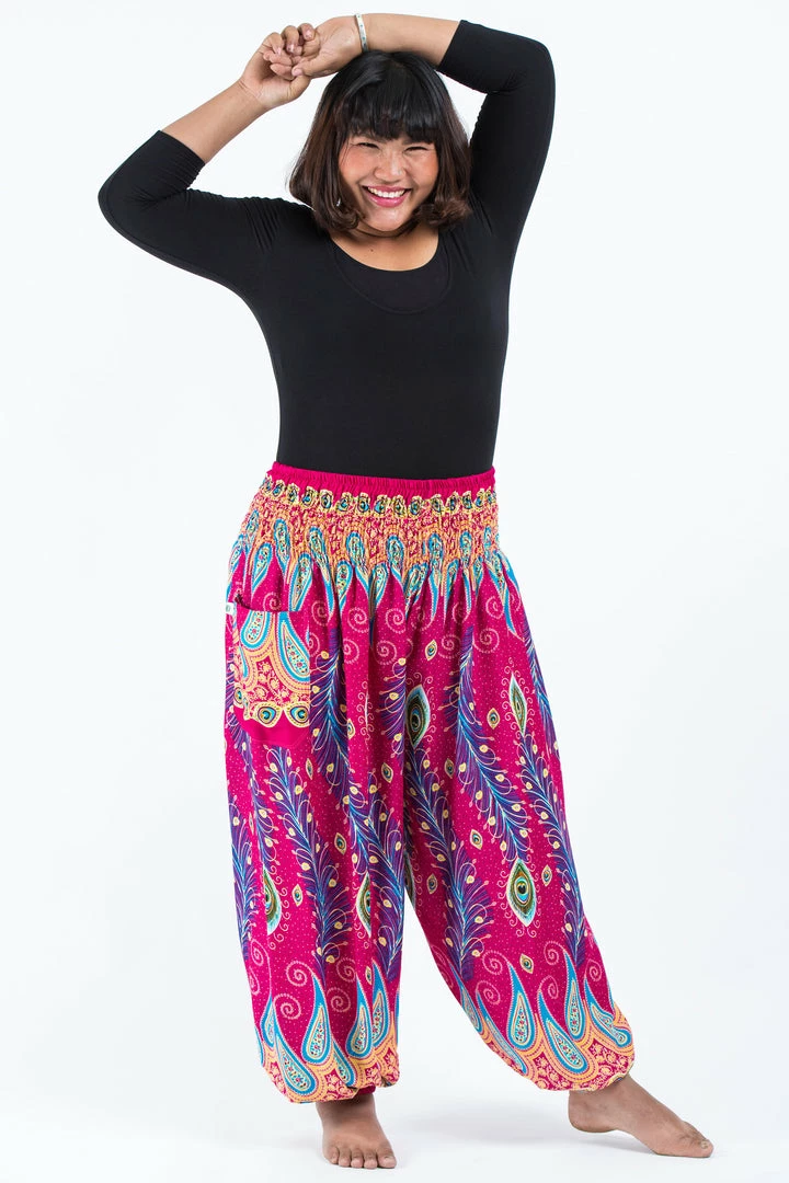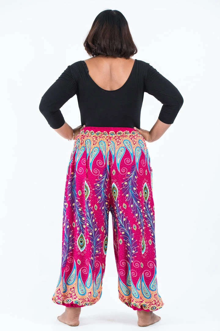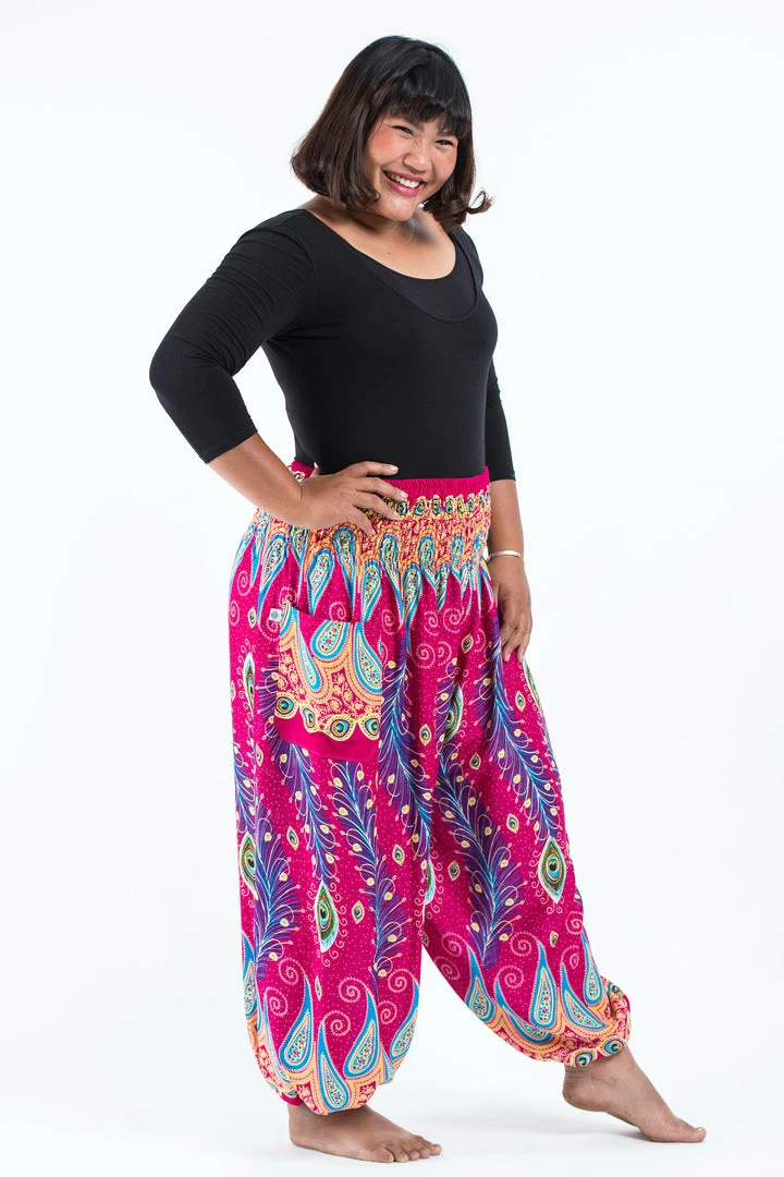 HaremPants.com Plus Size Peacock Paisley Women’s Harem Pants In Pink