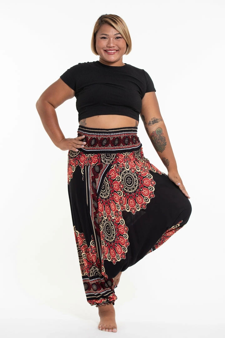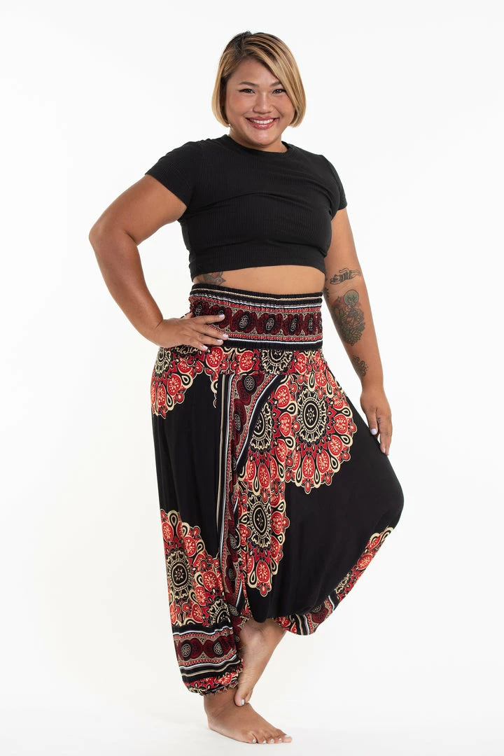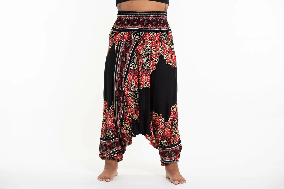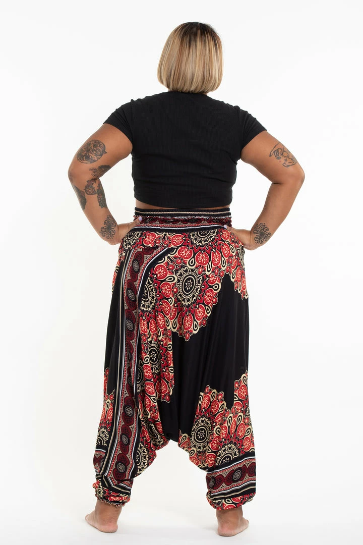 HaremPants.com Plus Size Peony Mandalas Drop Crotch Women’s Harem Pants In Black