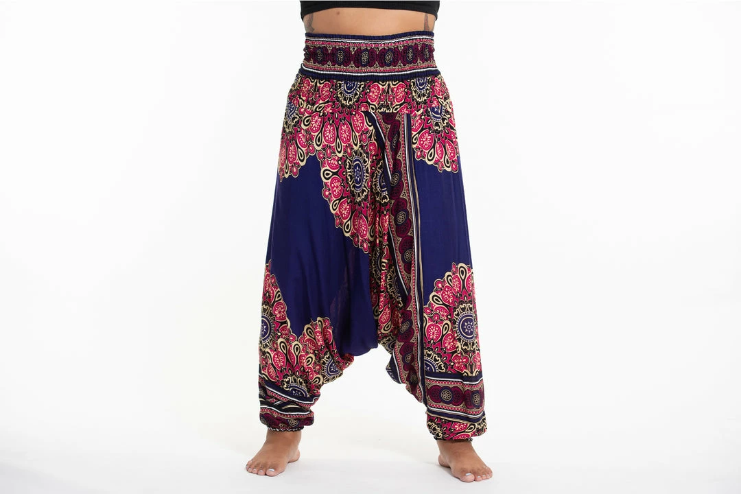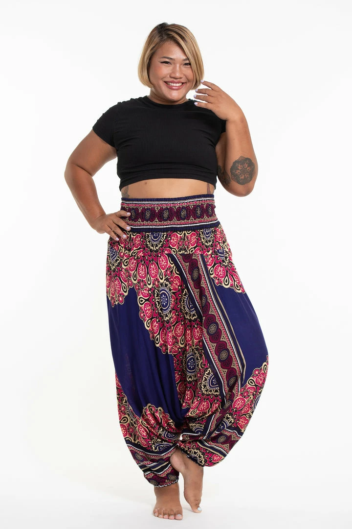 HaremPants.com Plus Size Peony Mandalas Drop Crotch Women’s Harem Pants In Indigo
