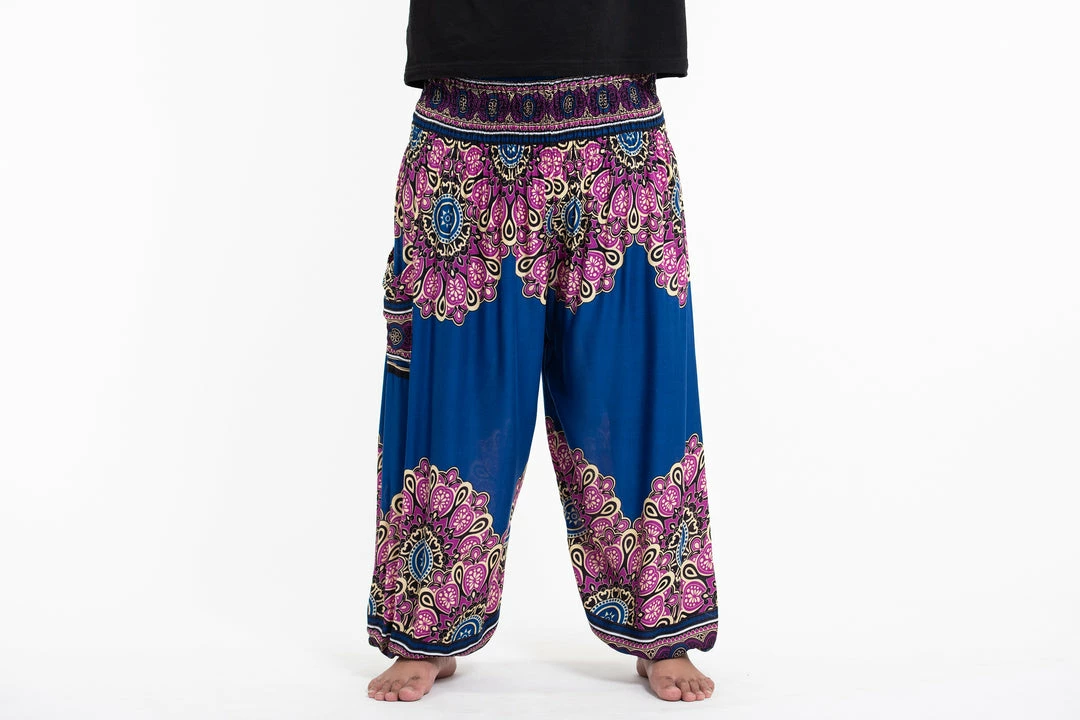 HaremPants.com Plus Size Peony Mandalas Men’s Harem Pants In Blue