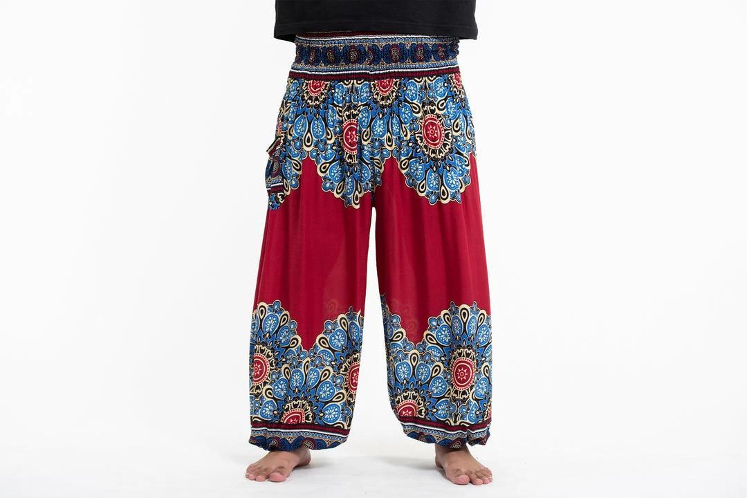 HaremPants.com Plus Size Peony Mandalas Men’s Harem Pants In Red
