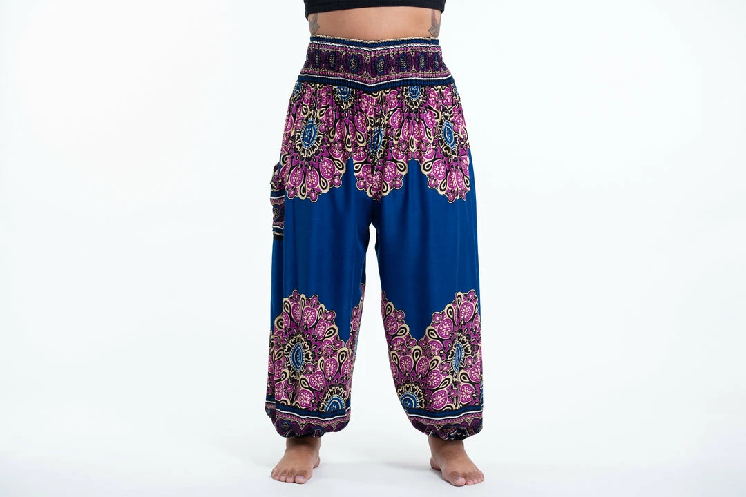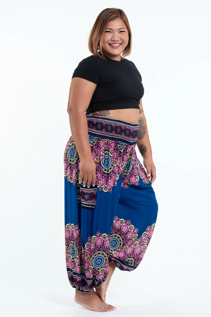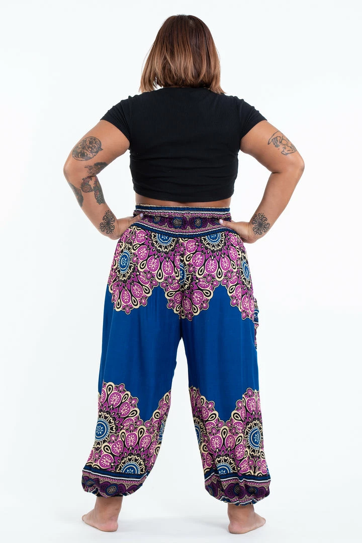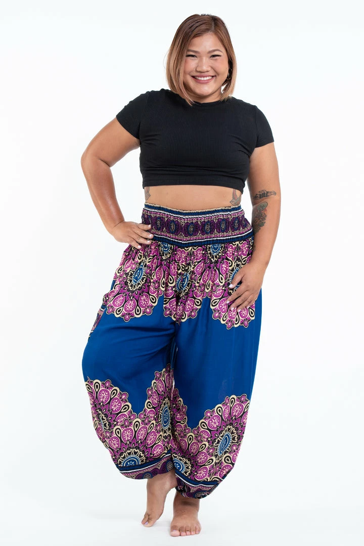 HaremPants.com Plus Size Peony Mandalas Women’s Harem Pants In Blue