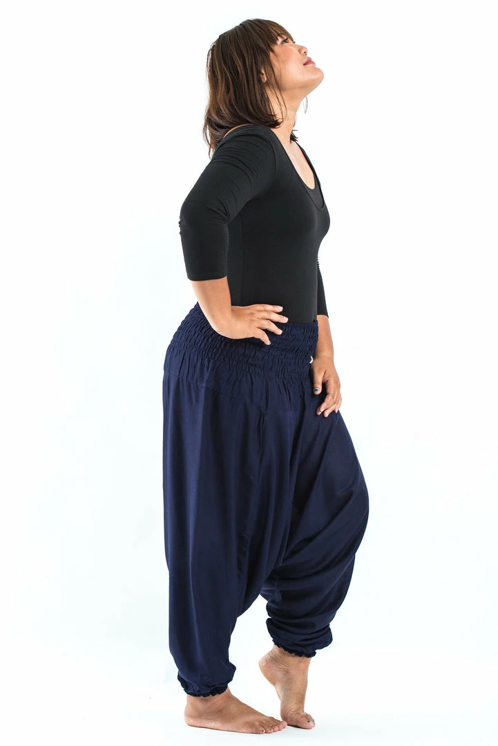 HaremPants.com Plus Size Solid Color Drop Crotch Women’s Harem Pants In Blue