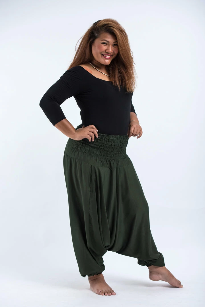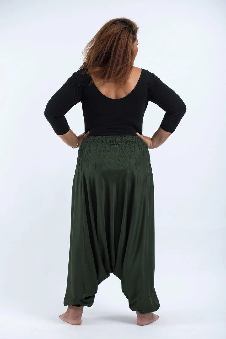 HaremPants.com Plus Size Solid Color Drop Crotch Women’s Harem Pants In Dark Green
