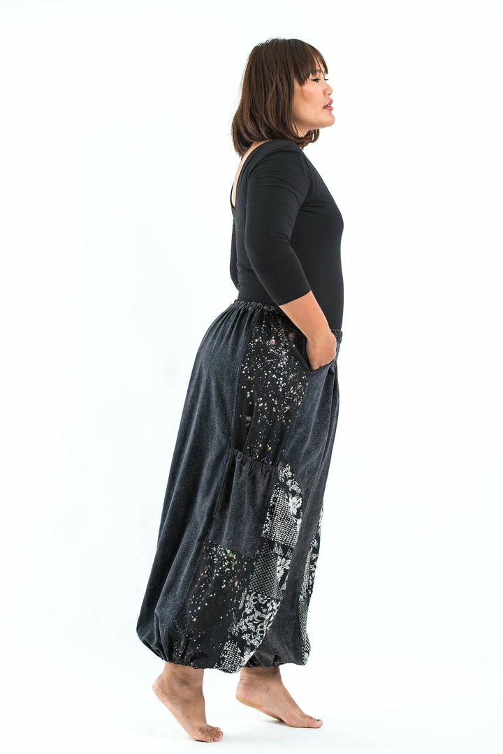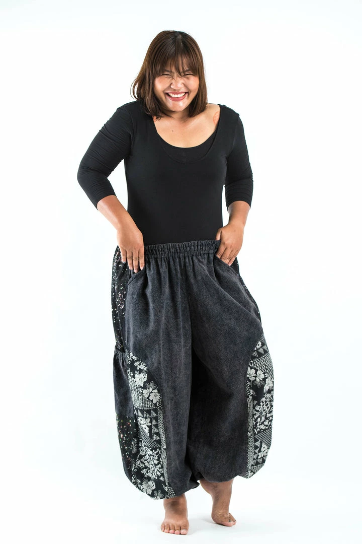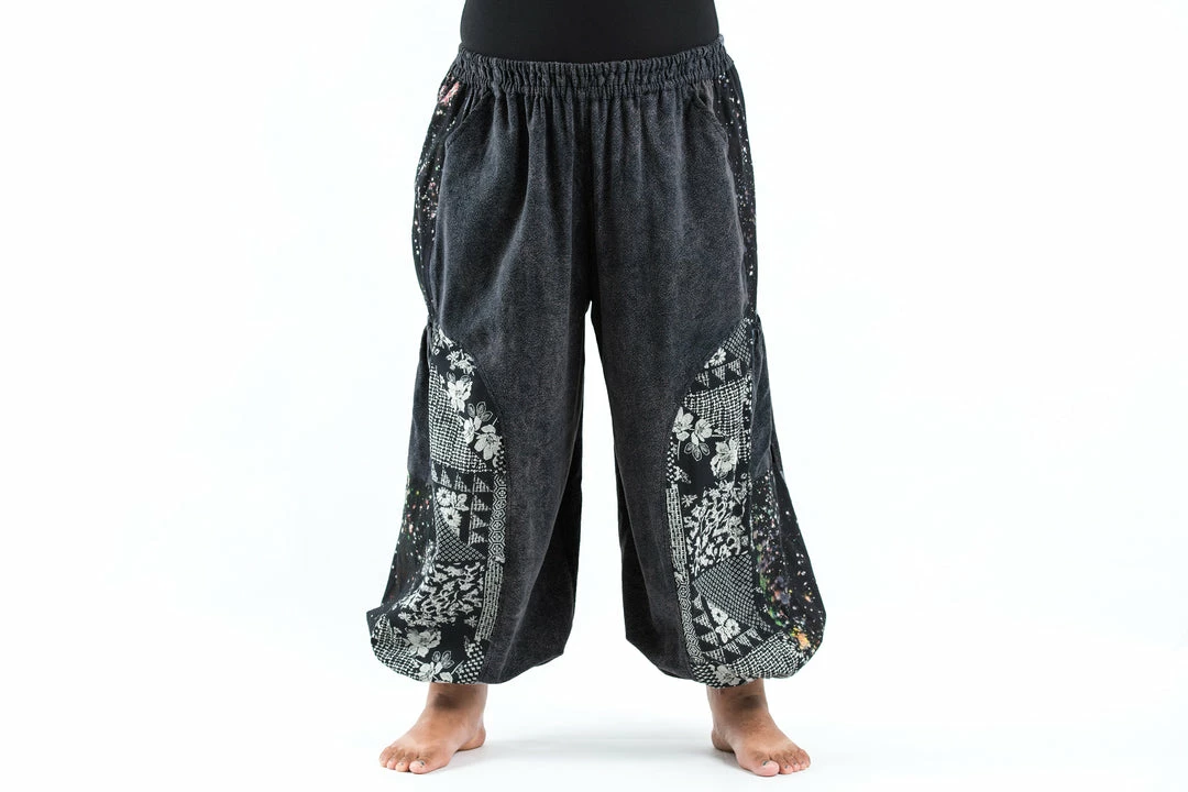 Stone Washed Patchwork Unisex Pants are super comfy and fun. Crafted with 100% Thai Cotton and Handmade Batik Cotton Patches. They can fit Medium body type to Plus Sizes. Elasticated waist can stretch up to 46″. They come with 4 pockets total.