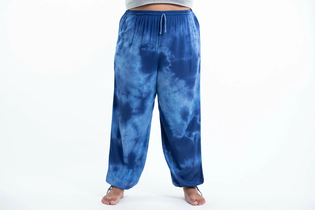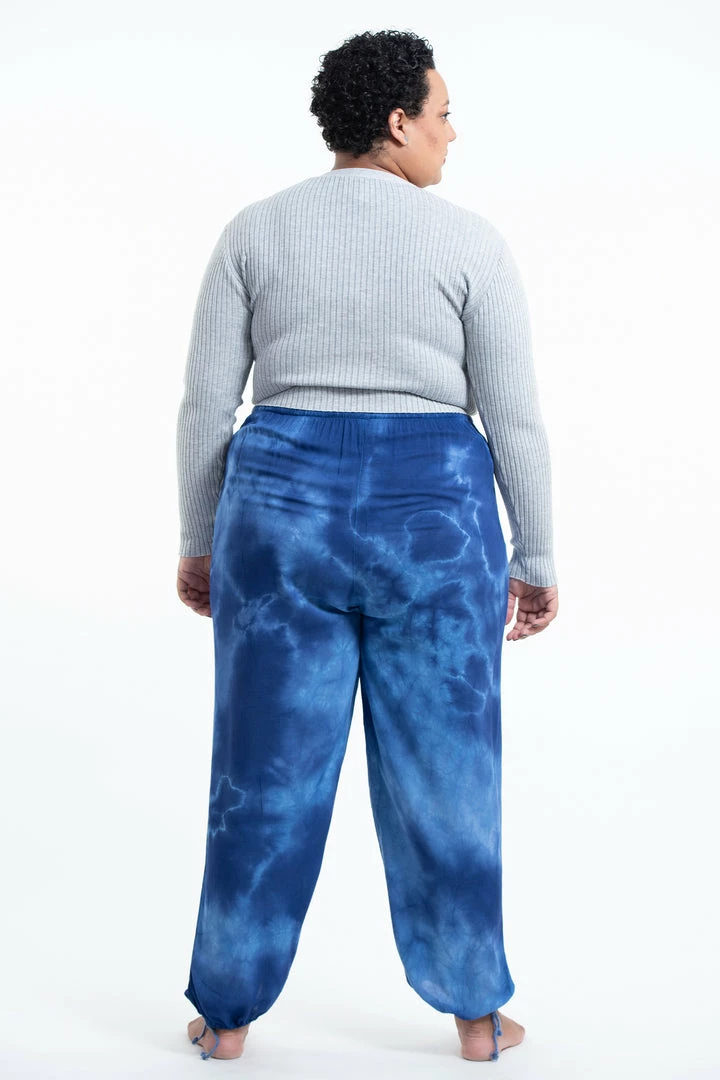 HaremPants.com Plus Size Tie Dye Drawstring Women’s Yoga Massage Pants In Blue