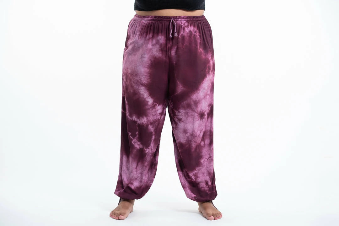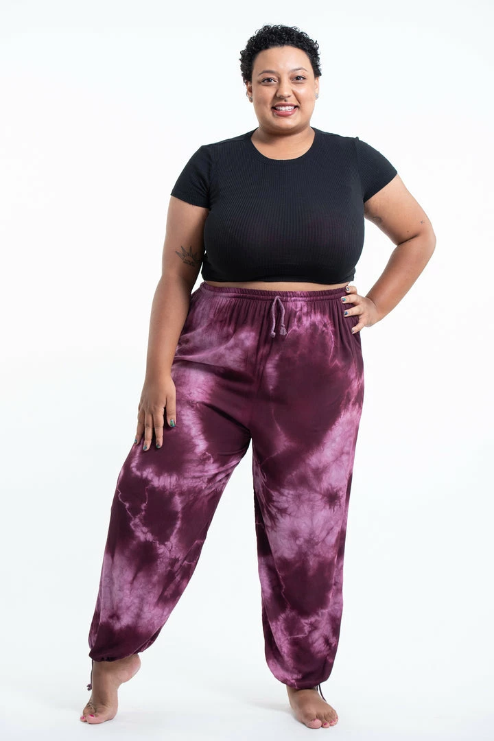 HaremPants.com Plus Size Tie Dye Drawstring Women’s Yoga Massage Pants In Dark Purple