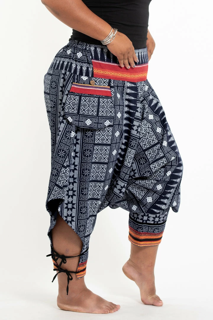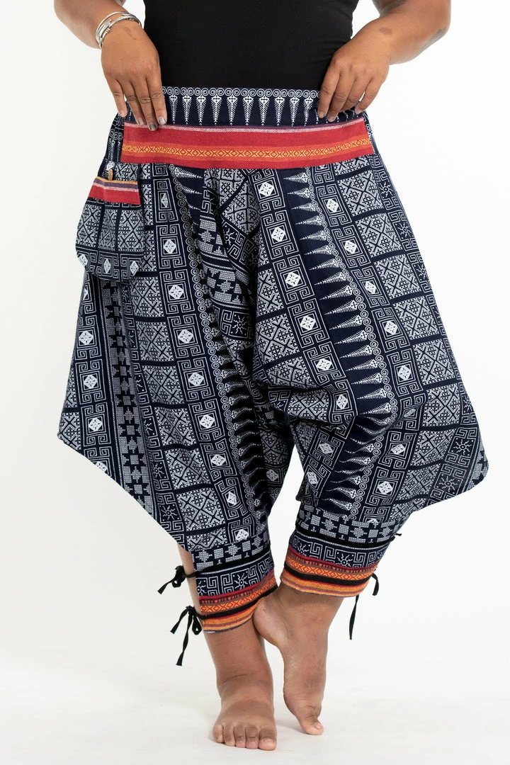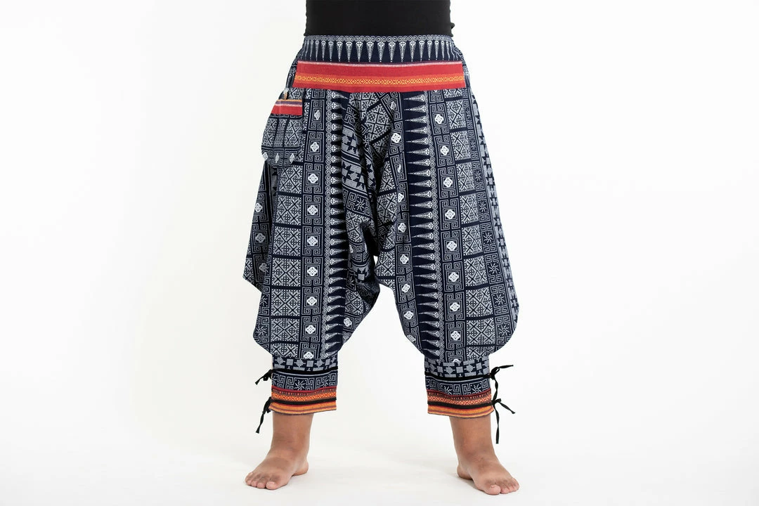 HaremPants.com Plus Size Traditional Prints Thai Hill Tribe Fabric Men’s Harem Pants With Ankle Straps In Navy