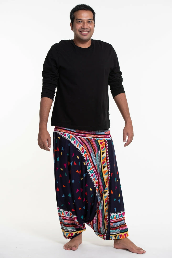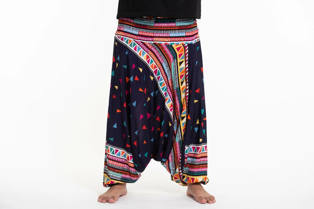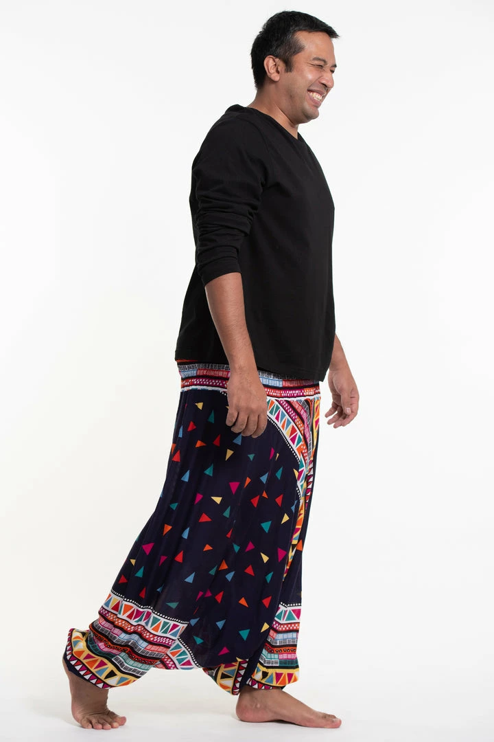 HaremPants.com Plus Size Triangles Drop Crotch Men’s Harem Pants In Navy