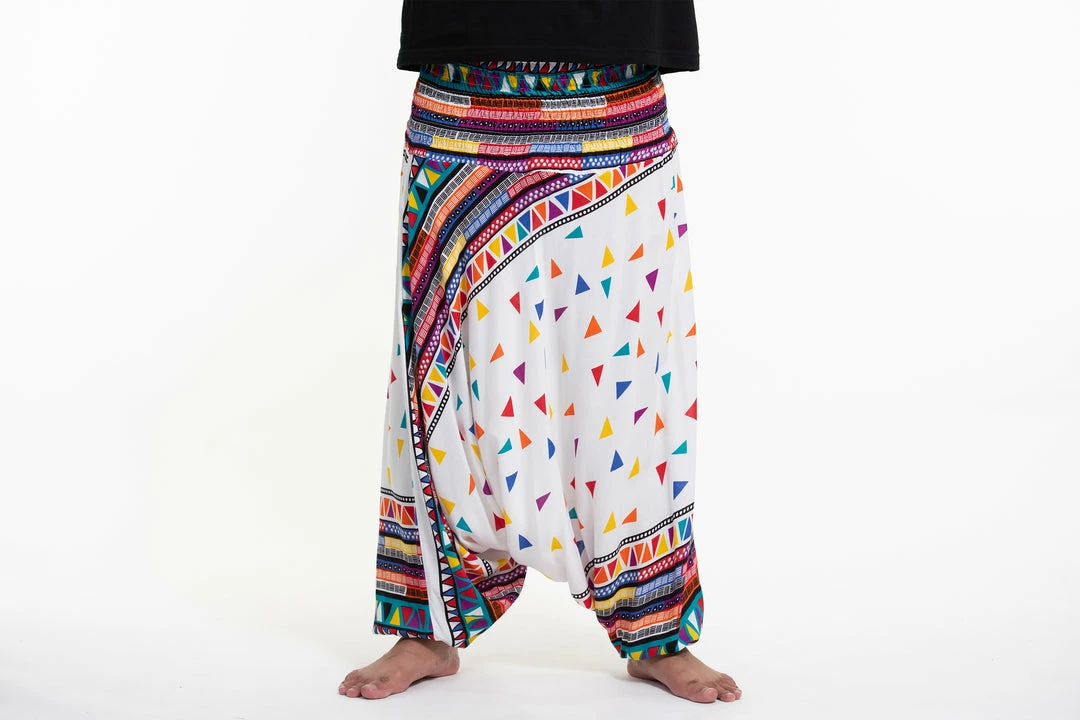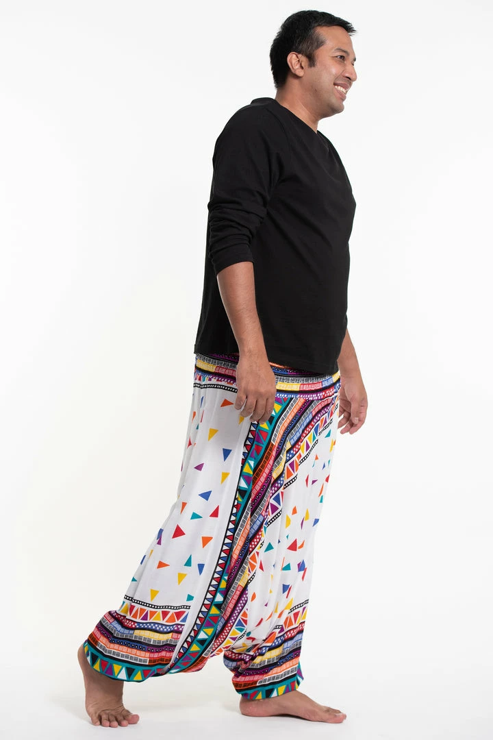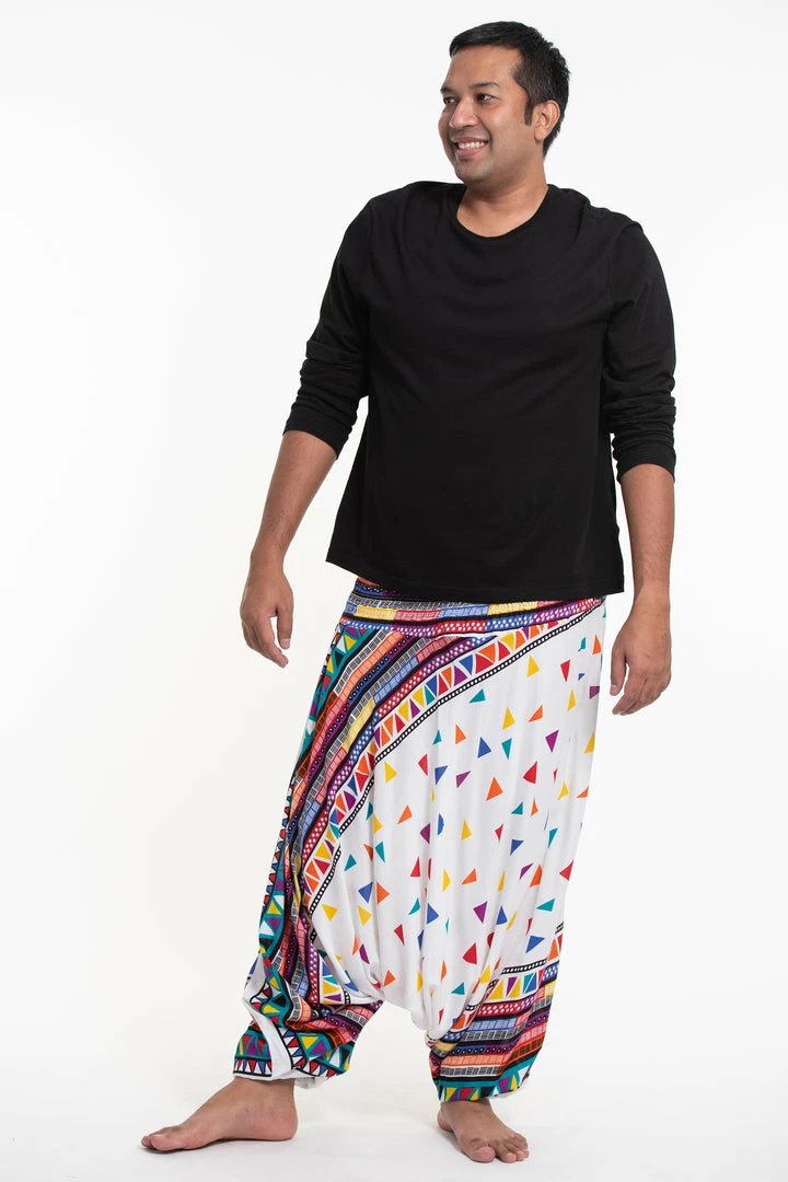 HaremPants.com Plus Size Triangles Drop Crotch Men’s Harem Pants In White
