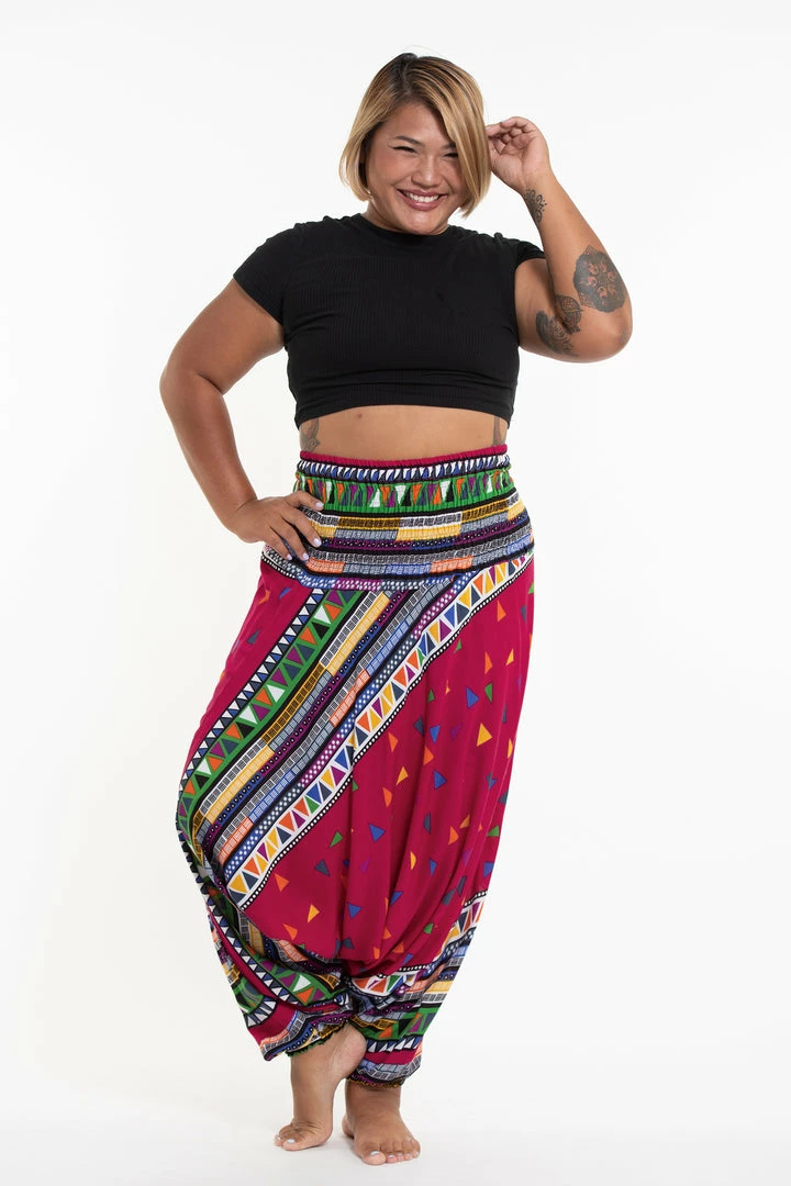 HaremPants.com Plus Size Triangles Drop Crotch Women’s Harem Pants In Pink