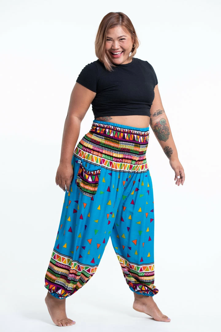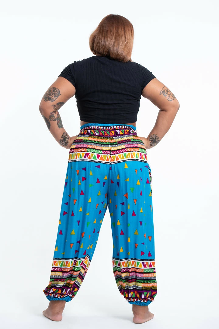 HaremPants.com Plus Size Triangles Women’s Harem Pants In Ocean Blue