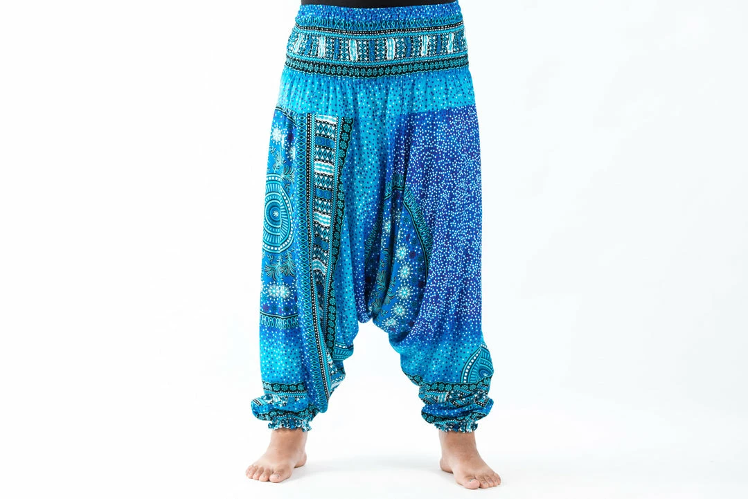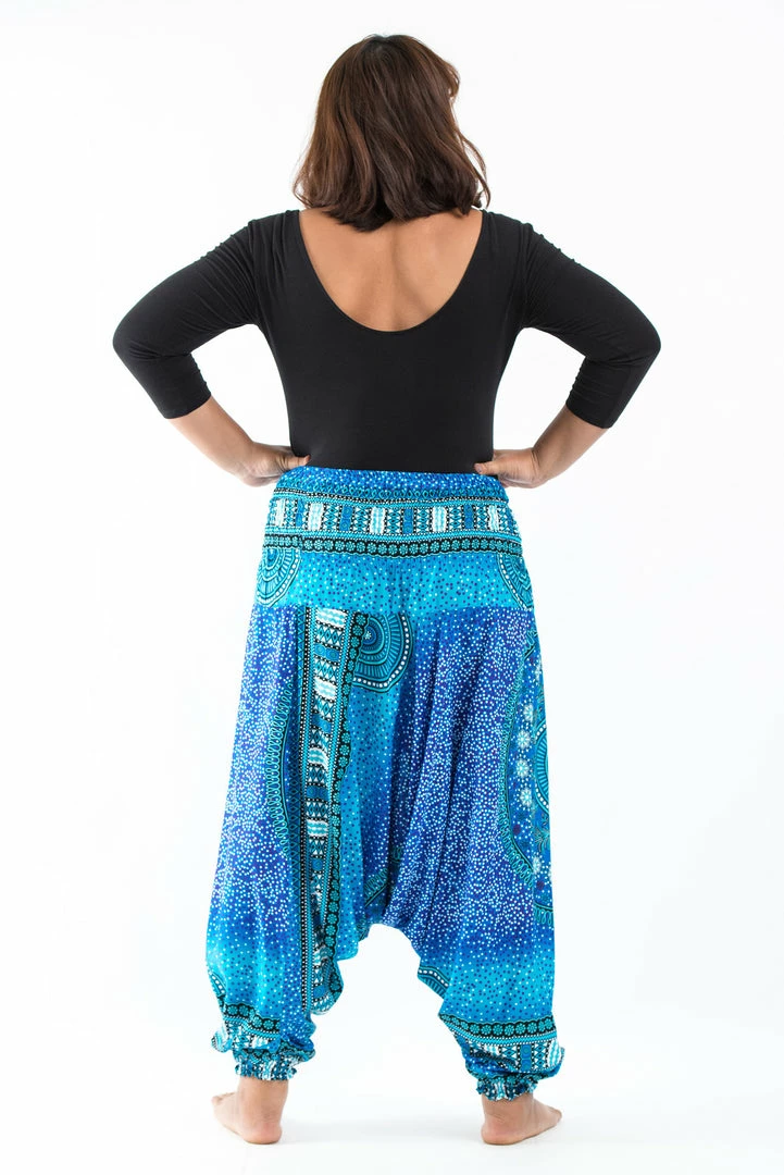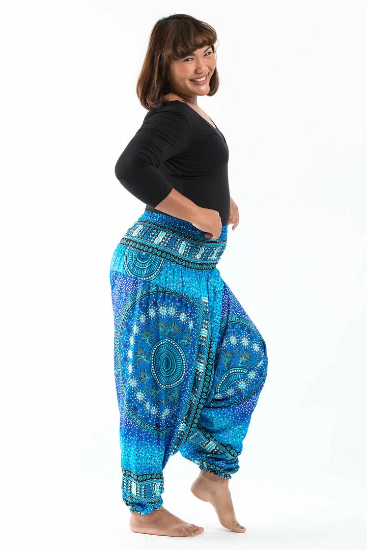 HaremPants.com Plus Size Tribal Chakras Drop Crotch Women’s Harem Pants In Blue