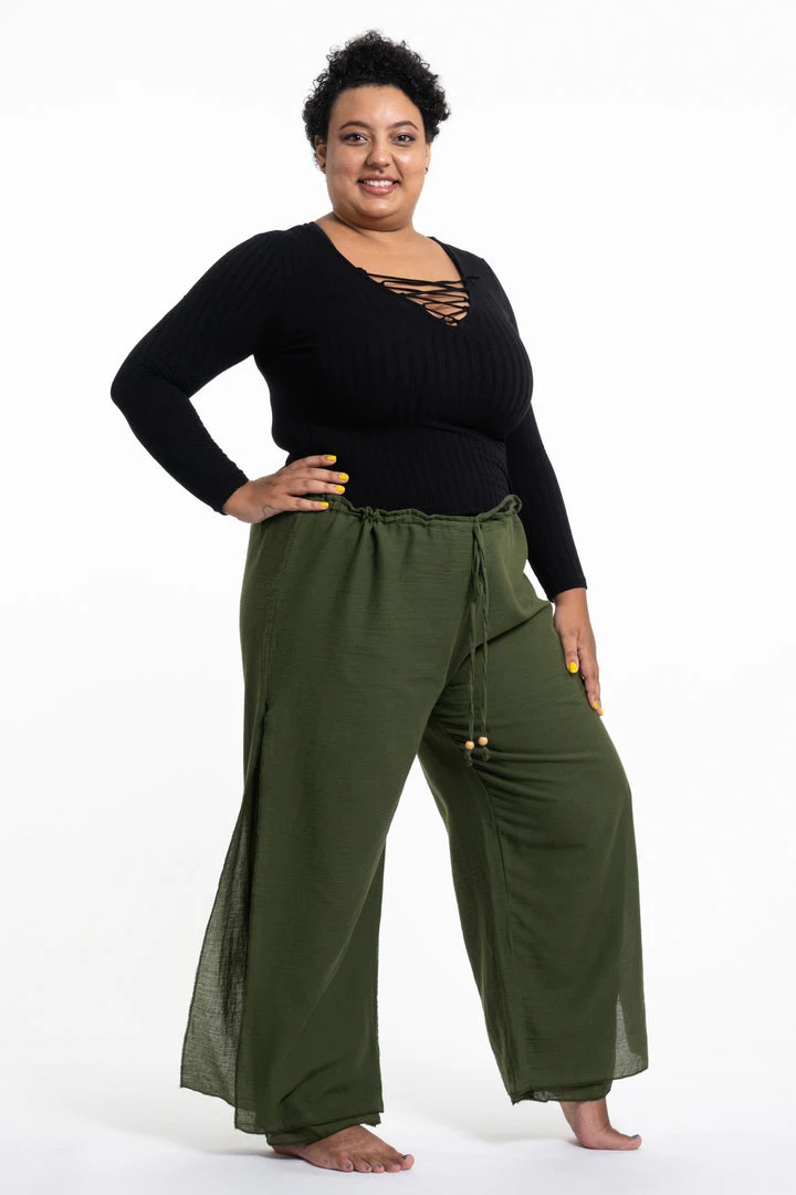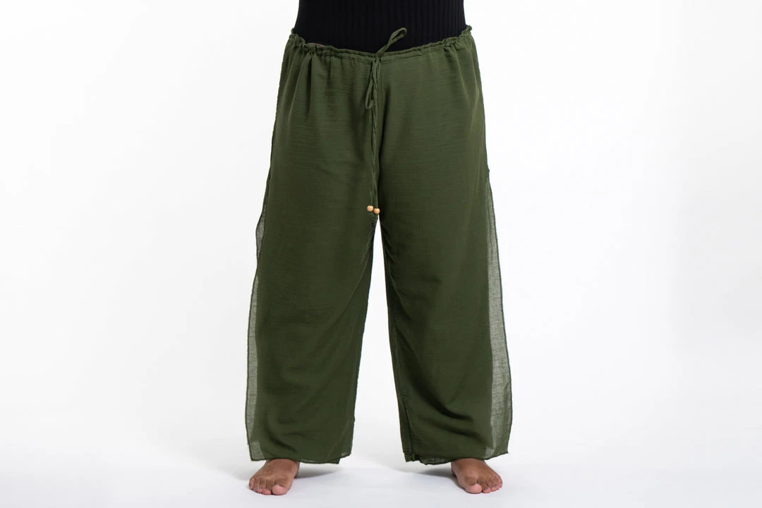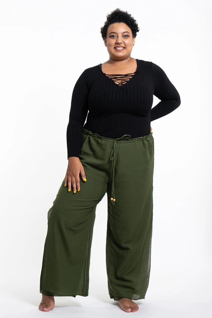 Super soft organic cotton wide-leg Thai style palazzo pants with an adjustable drawstring waistband.