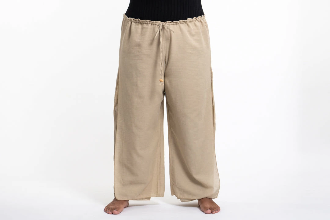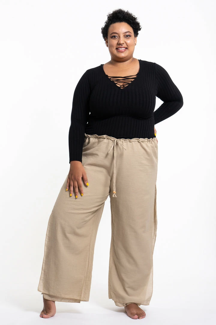 Super soft organic cotton wide-leg Thai style palazzo pants with an adjustable drawstring waistband.