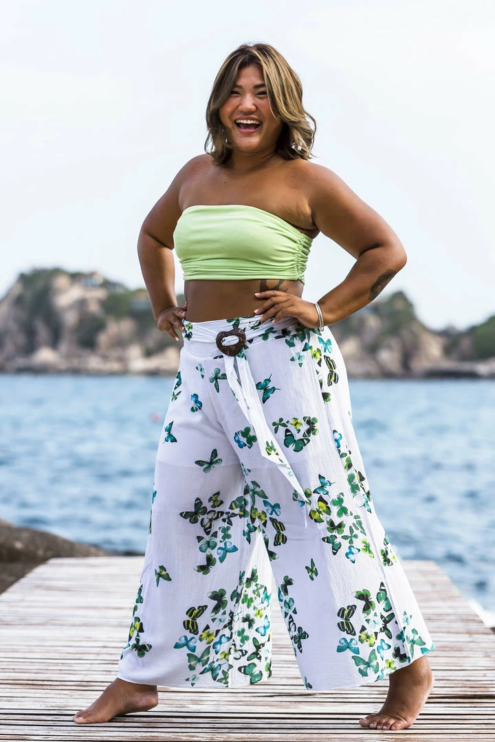 Super soft organic cotton wide-leg Thai style palazzo pants with elastic back waistband.